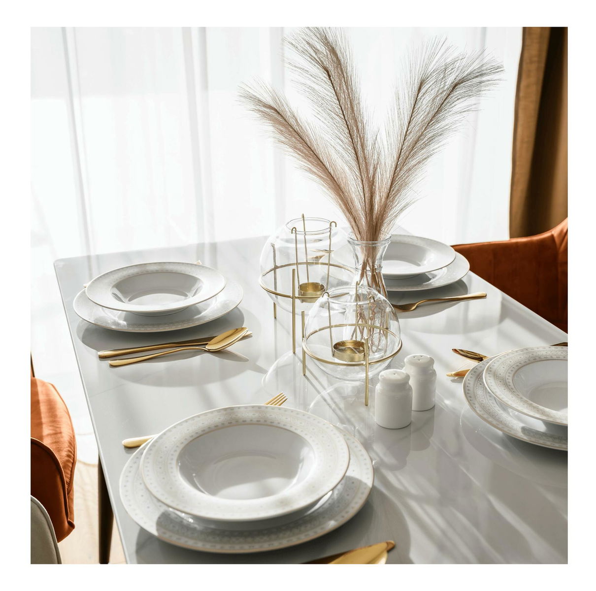 Masă sufragerie Fresia 1 (alb marmură + negru) (pentru 4 persoane)