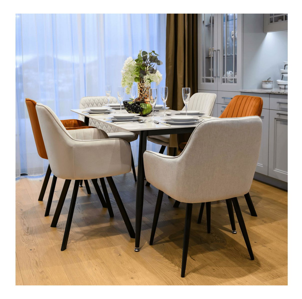 Masă sufragerie Fresia 2 (marmură albă + negru) (pentru 6 persoane) *vânzare stoc
