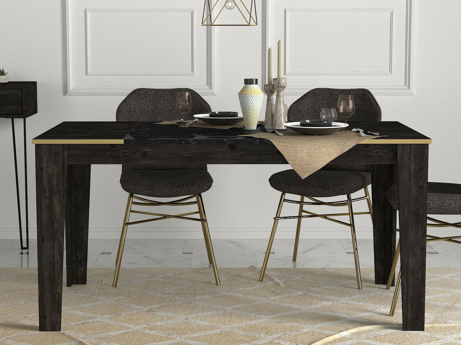Masă sufragerie (pentru 6 persoane) Verdon (Negru + Auriu)