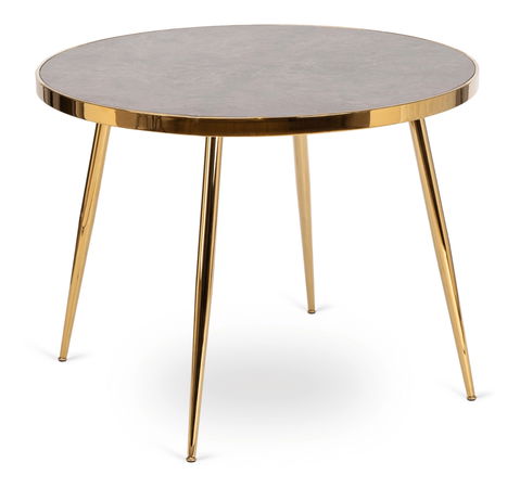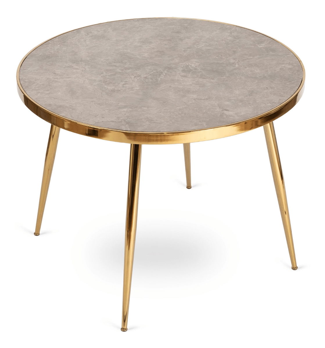 Masa Tripulacion de la Mebel Elite, concepută special pentru 4 persoane, adaugă o notă distinctă de rafinament prin blatul din marmură gri. Cadrul auriu strălucitor oferă un contrast plăcut, evidențiind stilul modern și sofisticat al piesei. Ideală pentru sufragerii în stil contemporan, eclectic sau art deco, masa se potrivește perfect alături de scaune tapitate cu texturi plăcute, creând o zonă de dining confortabilă și elegantă.