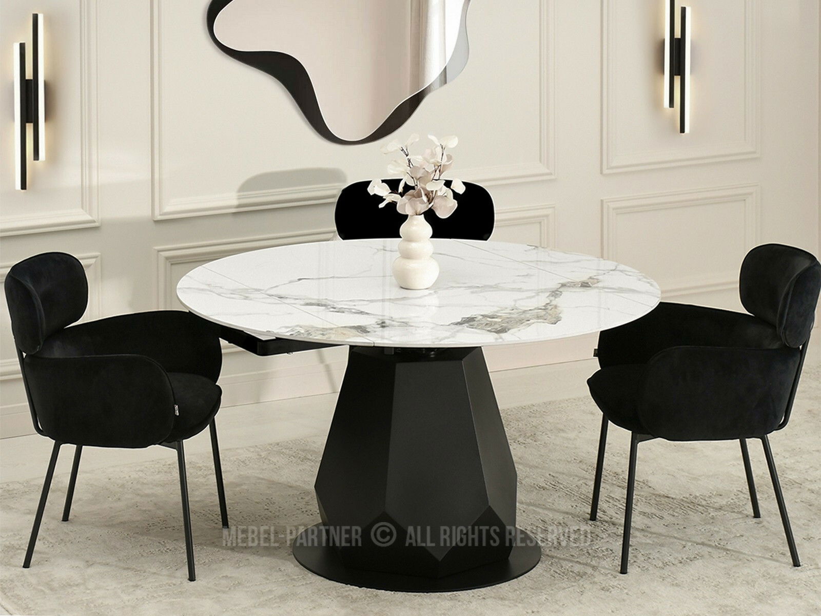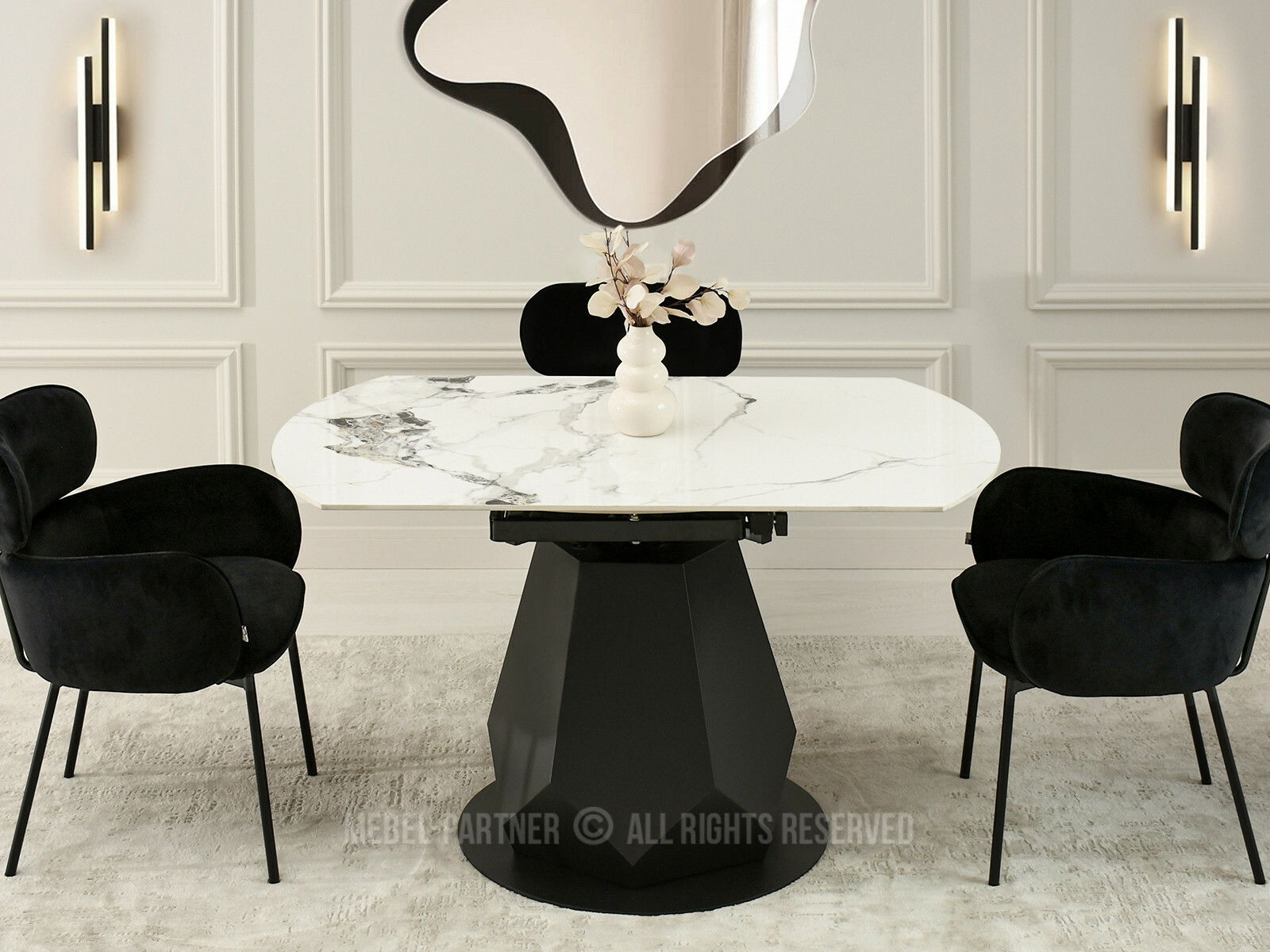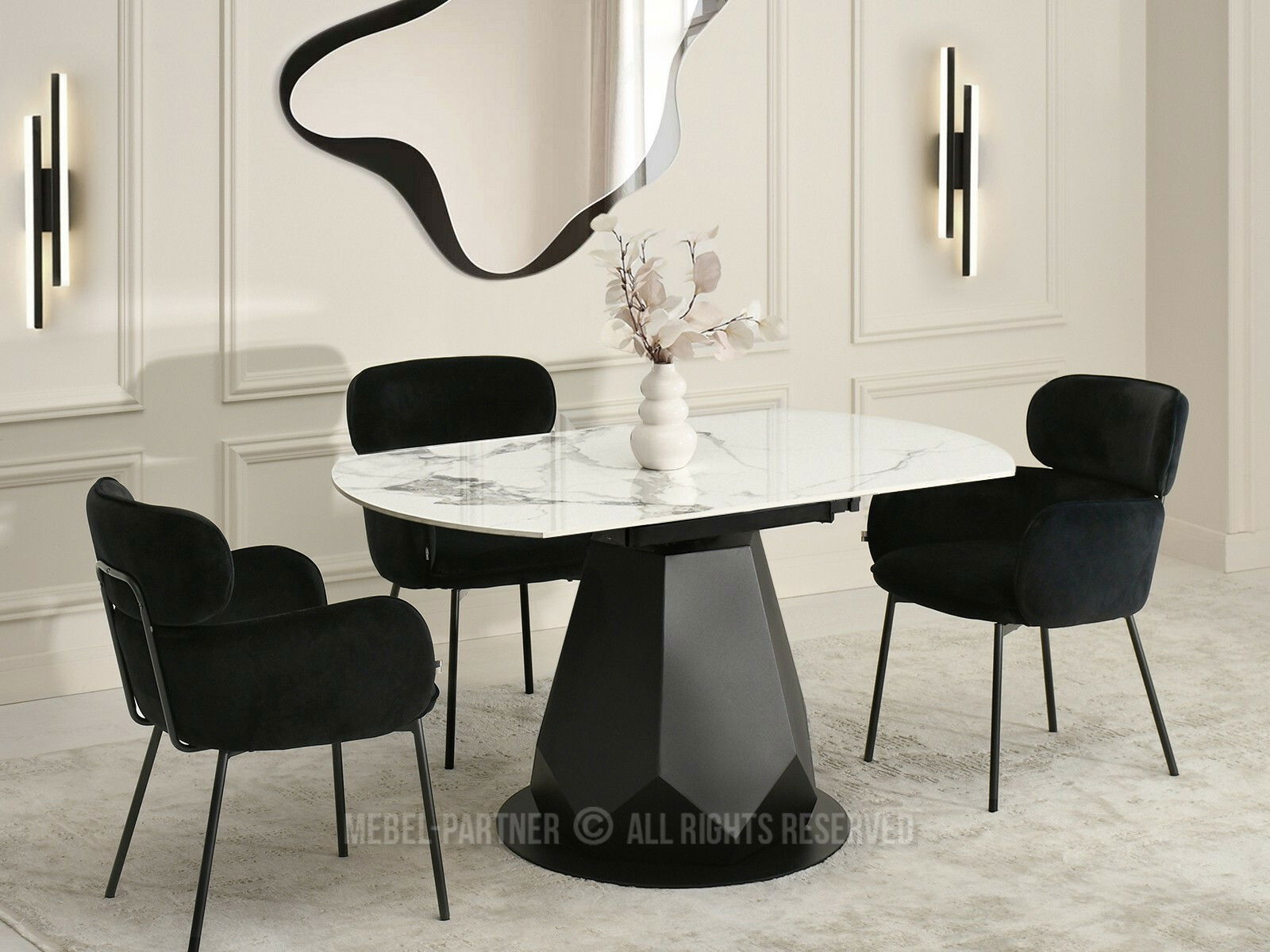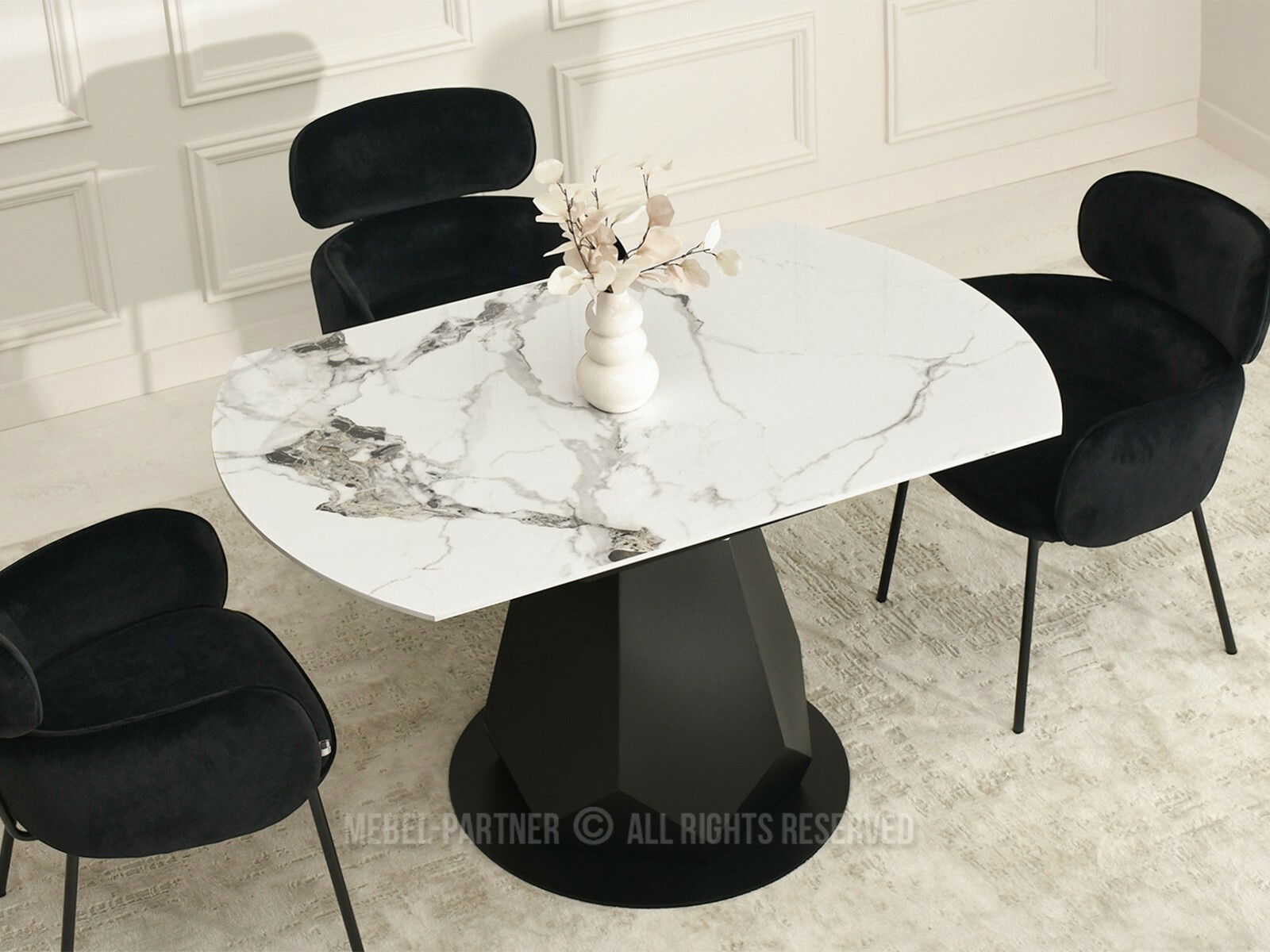 Masă sufragerie Zapatista (marmură + negru)