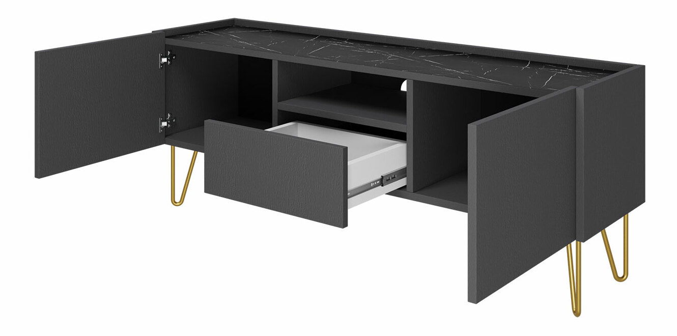 Masă TV Amaryllis ARTV144 (negru grafit + marmură regească negru) *vânzare stoc