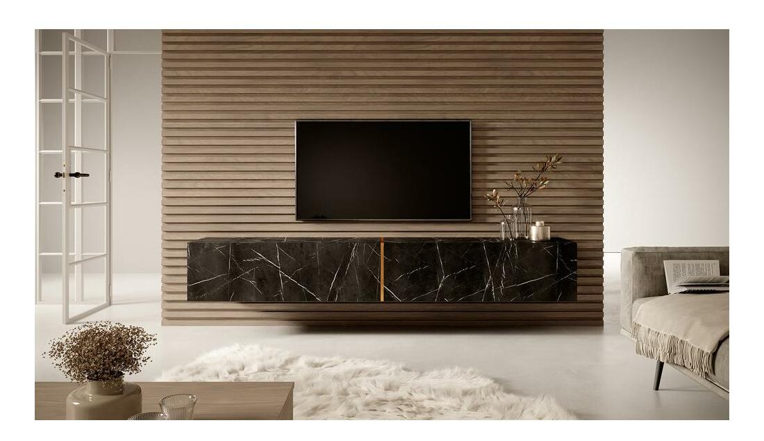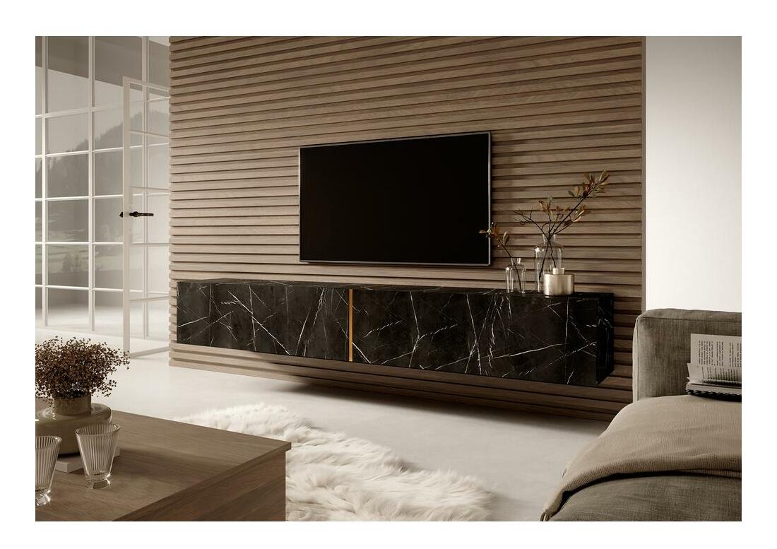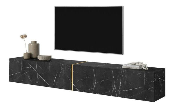 Măsuța TV Bakira 200 de la Selsey redefinește spațiul livingului prin designul minimalist și finisajul cu aspect marmură neagră. Această comodă TV impresionează prin liniile simple și elegante, potrivite pentru un ambient modern, dar se integrează cu ușurință și în decoruri contemporane sau industriale.