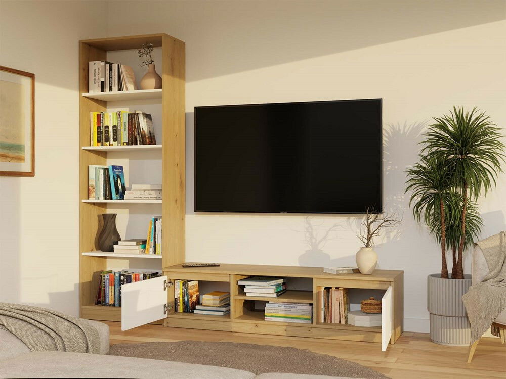 Masă TV/ Comodă TV Musecalo 140 (stejar artisan + alb)