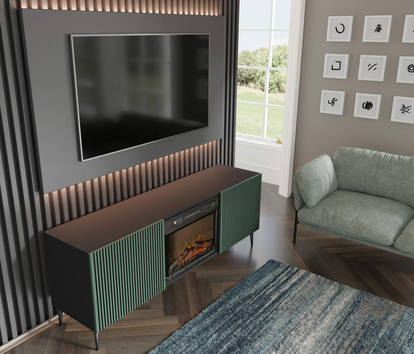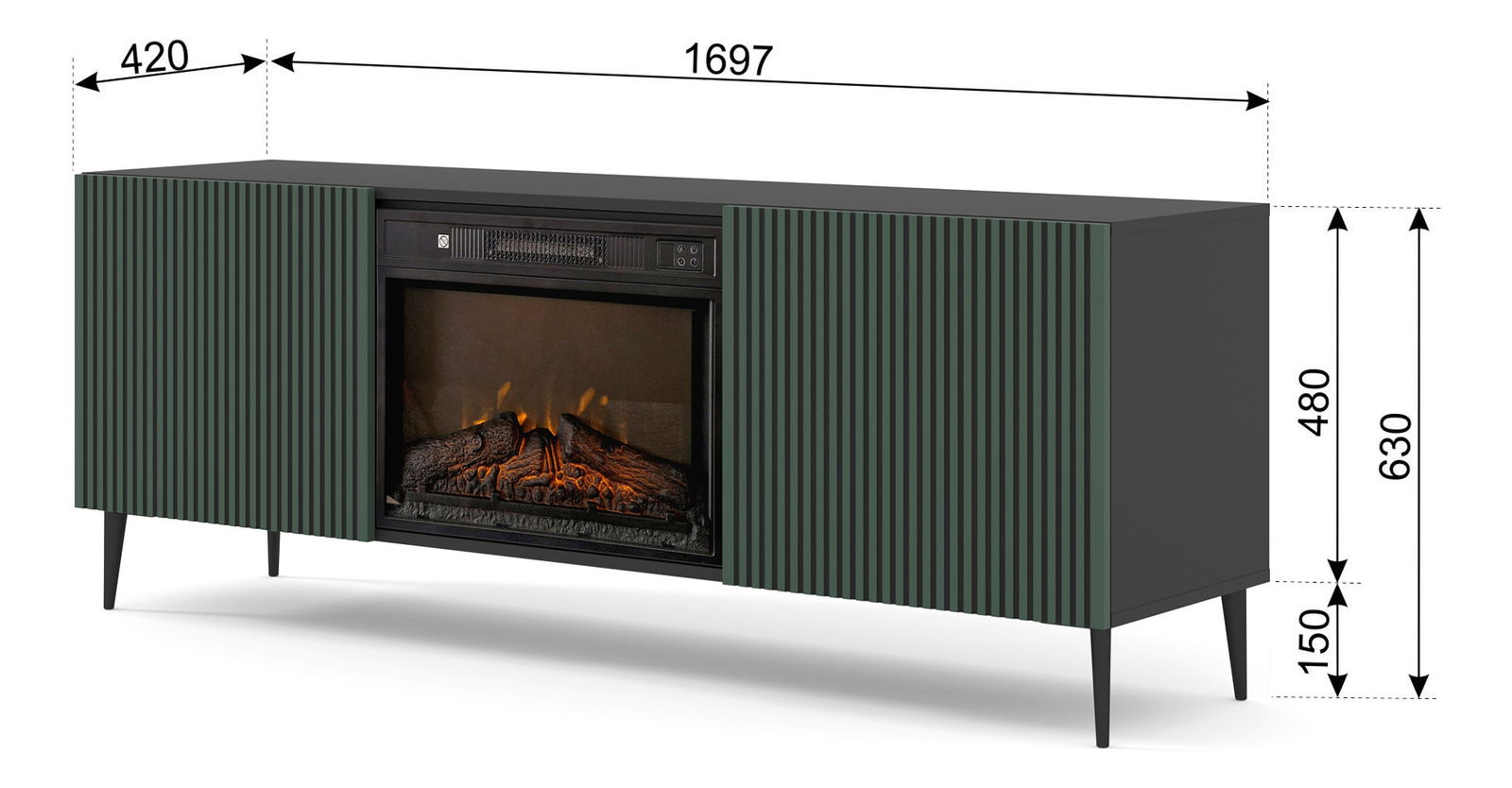 Masă TV cu bioșemineu FPB 2D 170 C Rowanna (Negru + Verde închis)