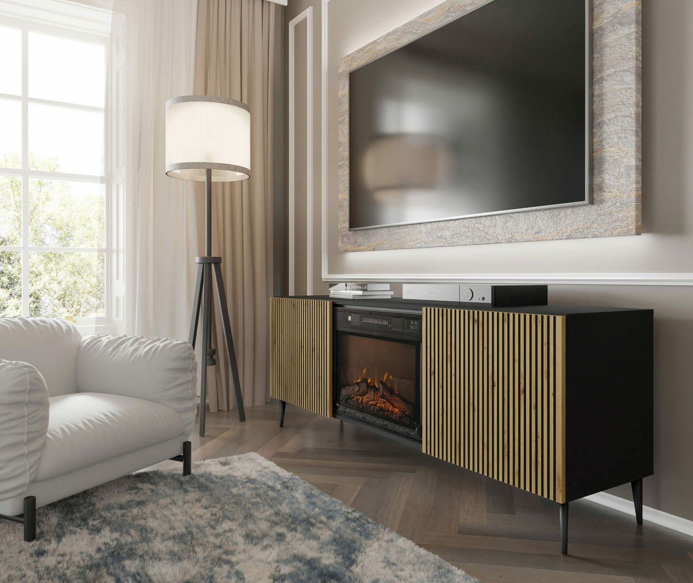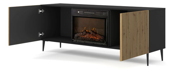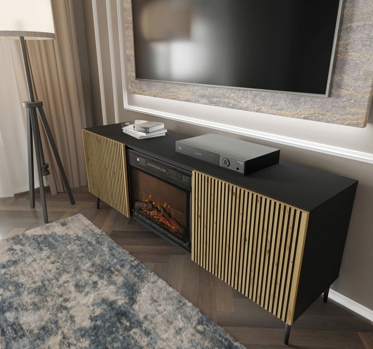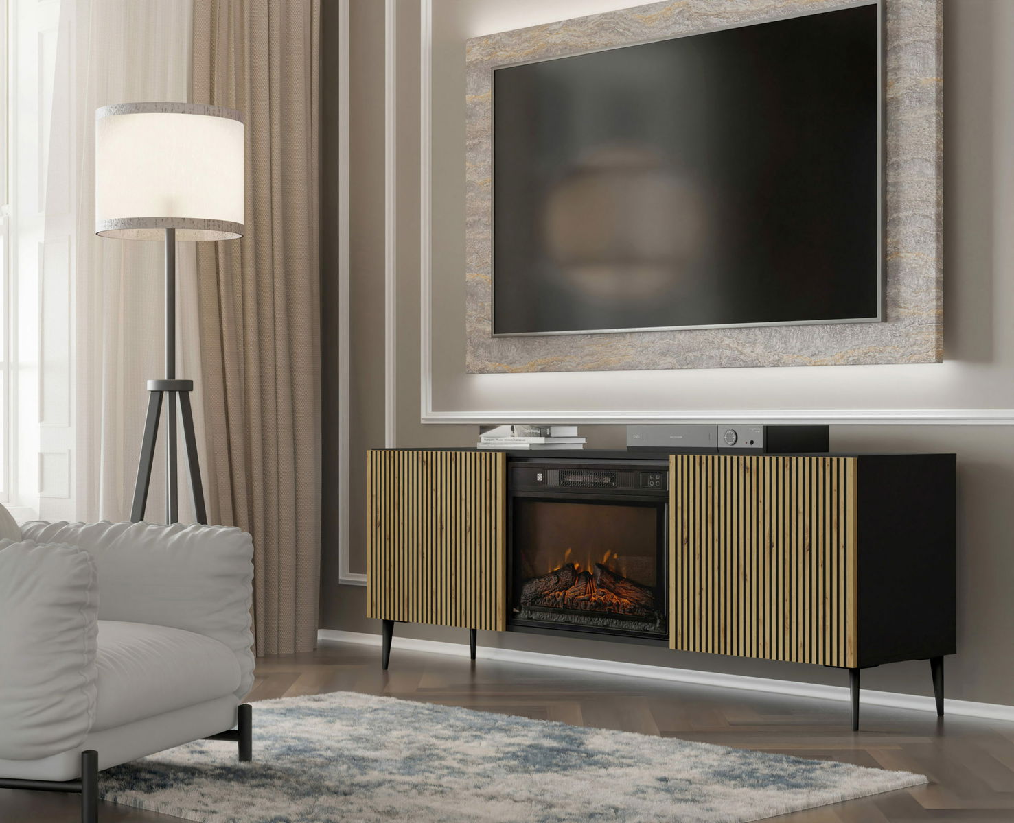 Masă TV cu bioșemineu FPB 2D 170 C Rowanna (Stejar artisan + Negru)