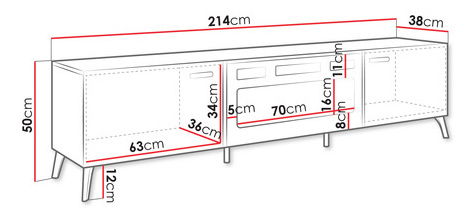 Designul inteligent al mobilierului integrează multiple spații de depozitare esențiale pentru organizarea electronicelor, telecomenzilor și accesoriilor media. Aceasta face măsuța TV ideală pentru sufragerii și zone de relaxare.