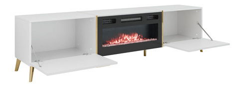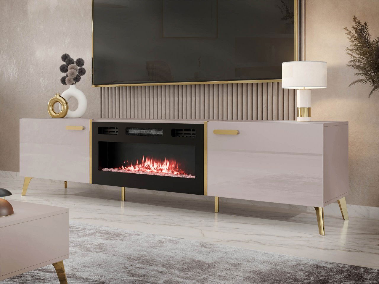 Masă TV cu șemineu electric Rostasi EF (cashmir lucios + auriu)