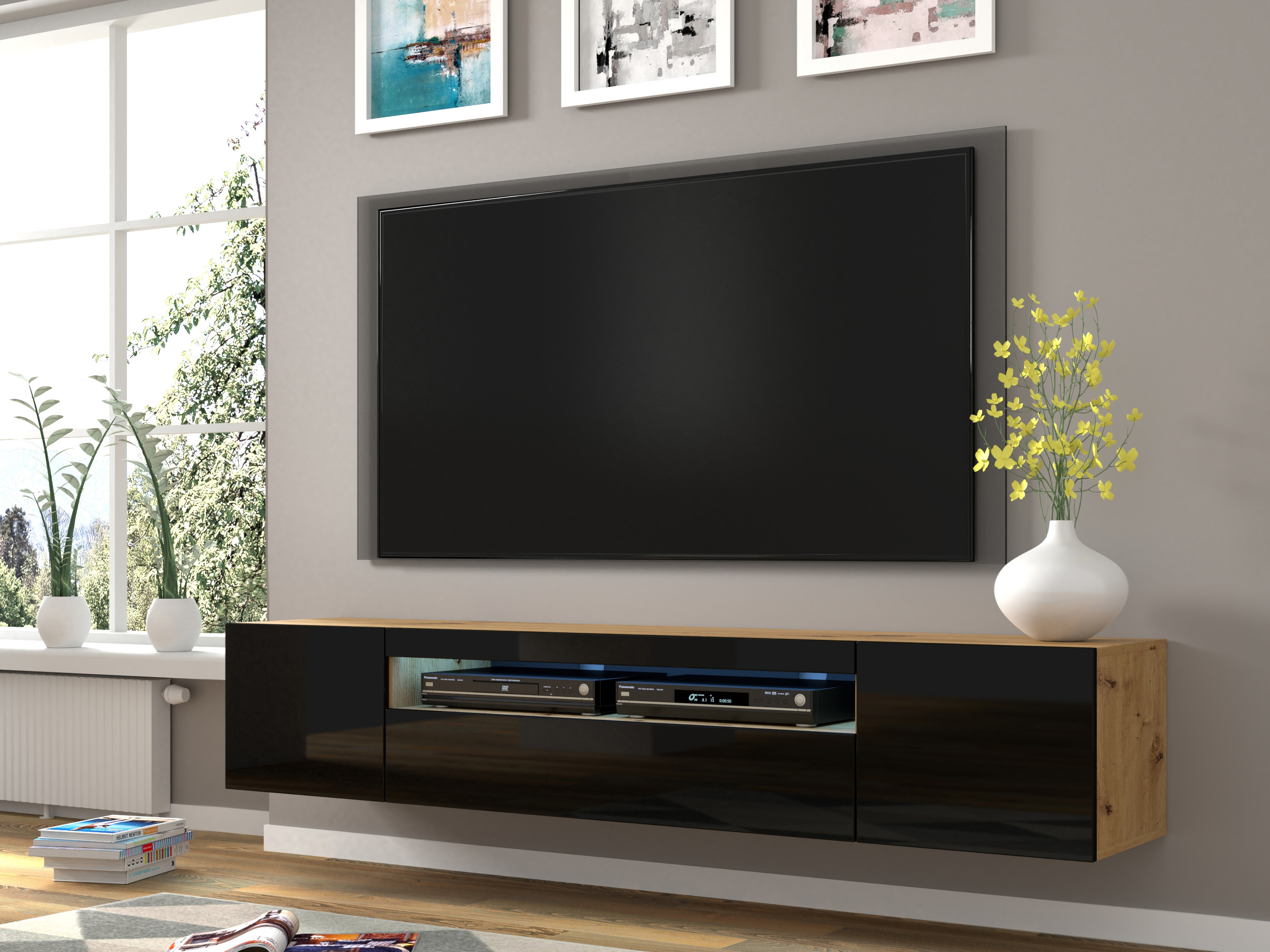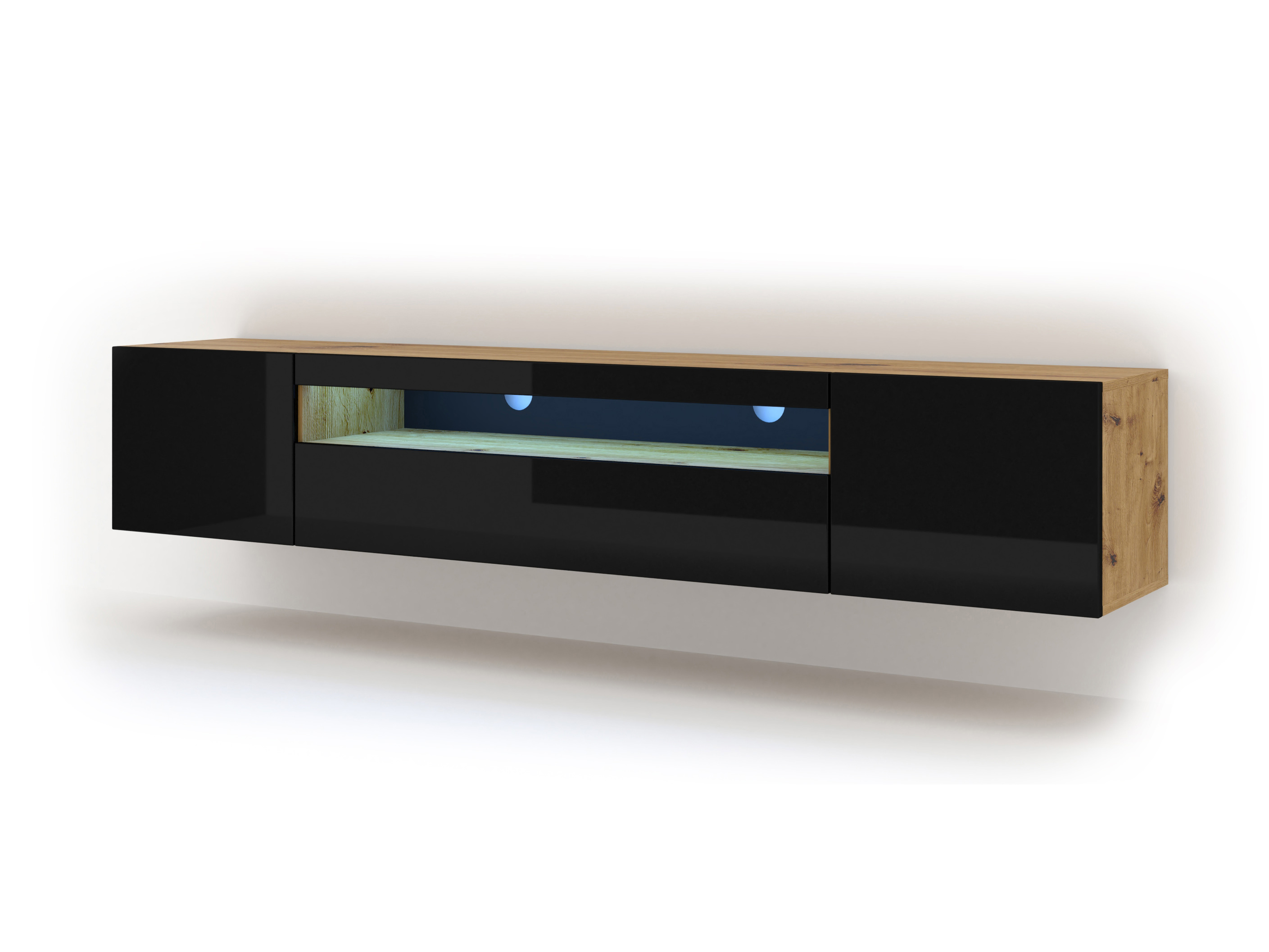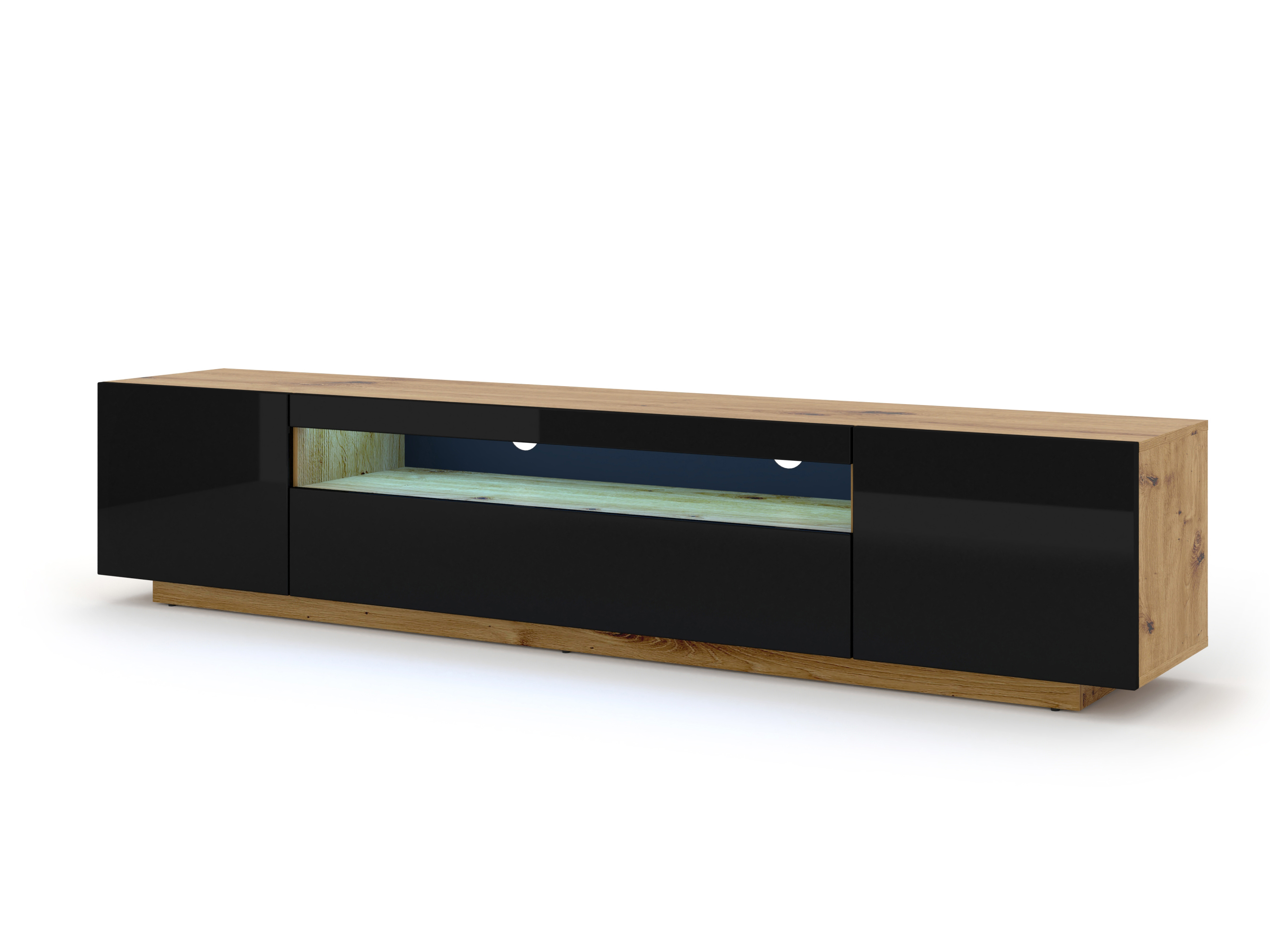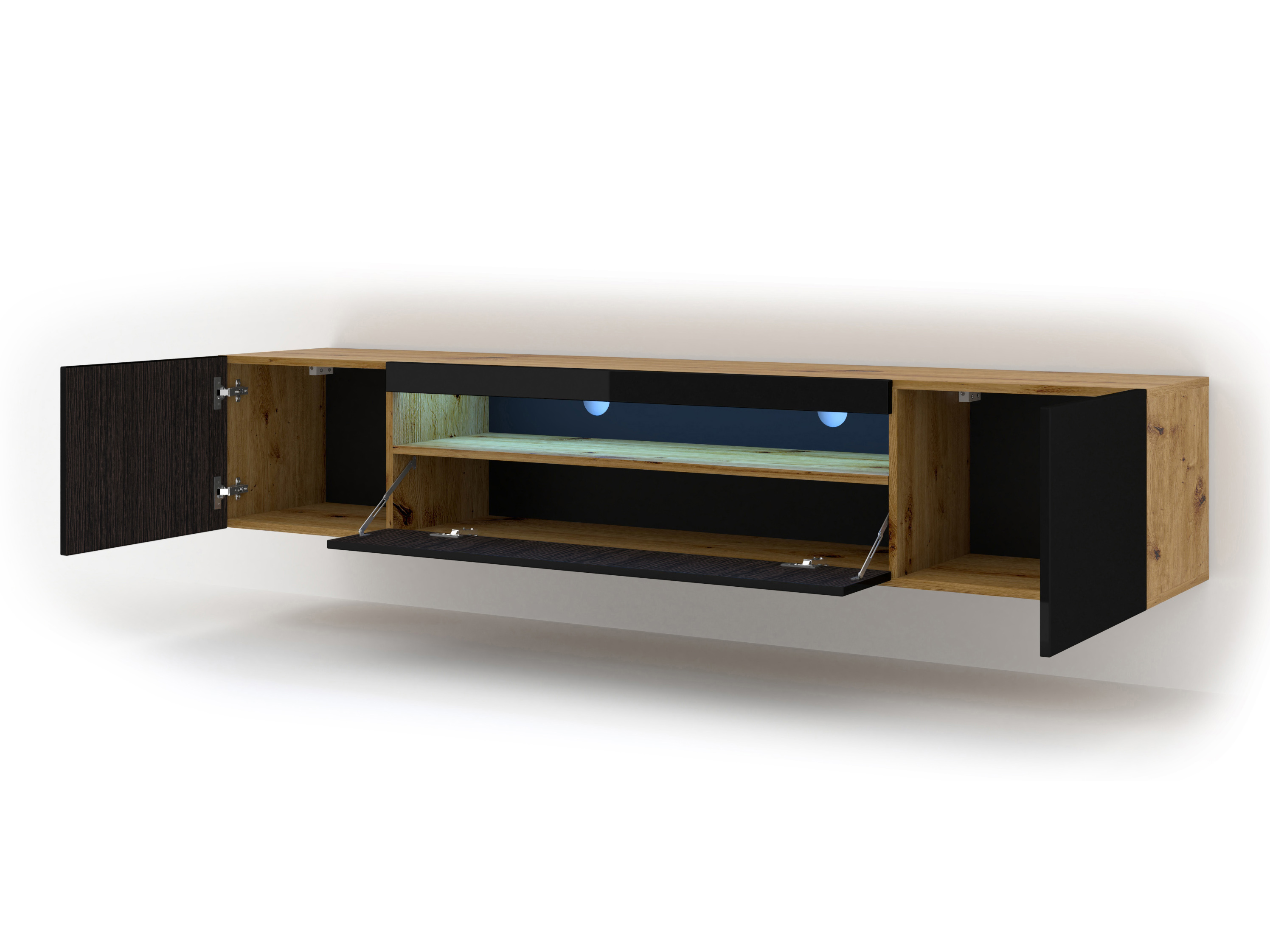 Masă TV/Dulap Aurora 200 (Stejar artisan + Negru) (LED)