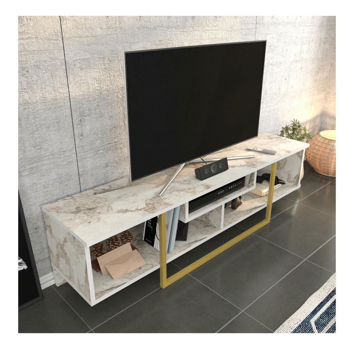Masă TV/Dulap Aslana 150 (auriu + alb)