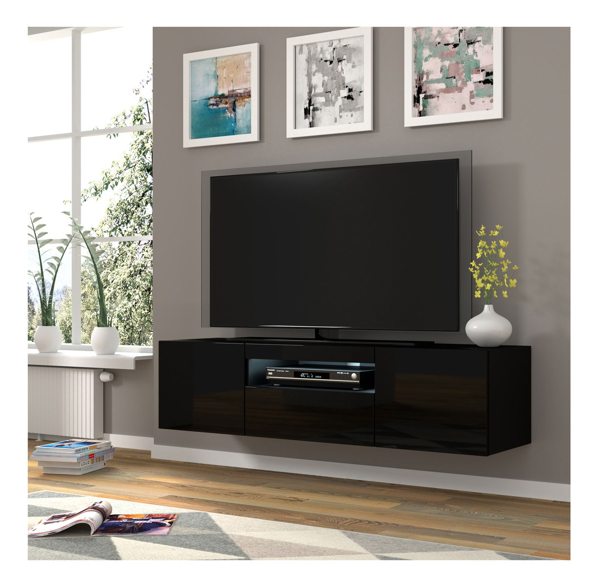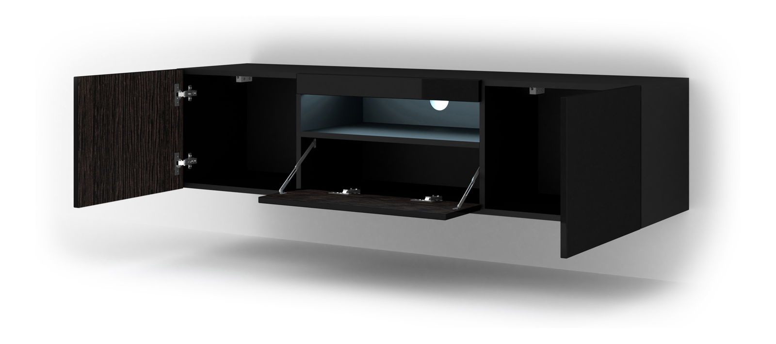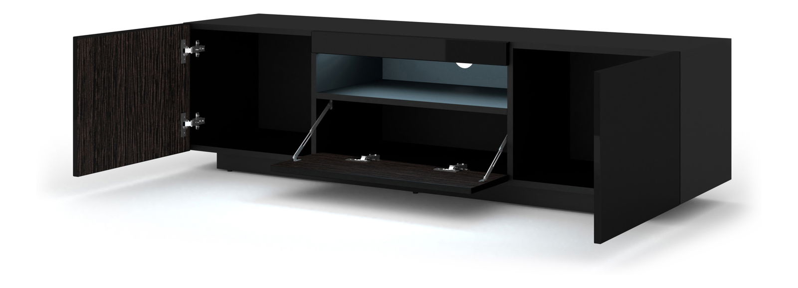 Masă TV/Dulap Aurinko 150 (Negru lucios) (cu iluminat)