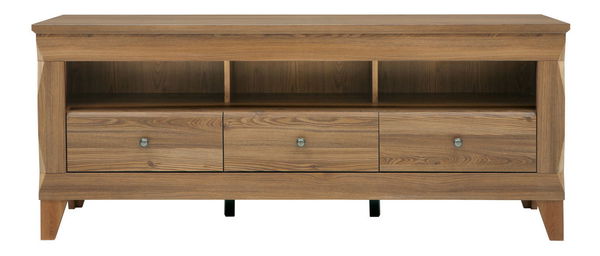 AfișeazăMasa de televizor Bergen are un design simplu dar cu detalii originale. Muchiile tăiate și forma picioarelor asigură că nu avem de-a face cu o piesă de mobilier plictisitoare. Se poate utiliza și ca masă pentru televizor sau dulap. Dulapul are trei sertare și un raft.