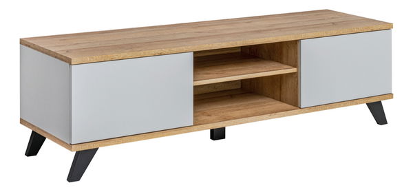 Masă TV de stil Bogota pe culoarea perlă gri în combinație cu design natural de stejar va oferi livingului sau biroului aerisire.