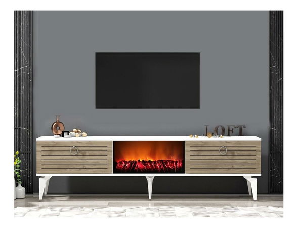 Masă TV/Dulap cu șemineu Sulotu 2 (alb + Nuc)