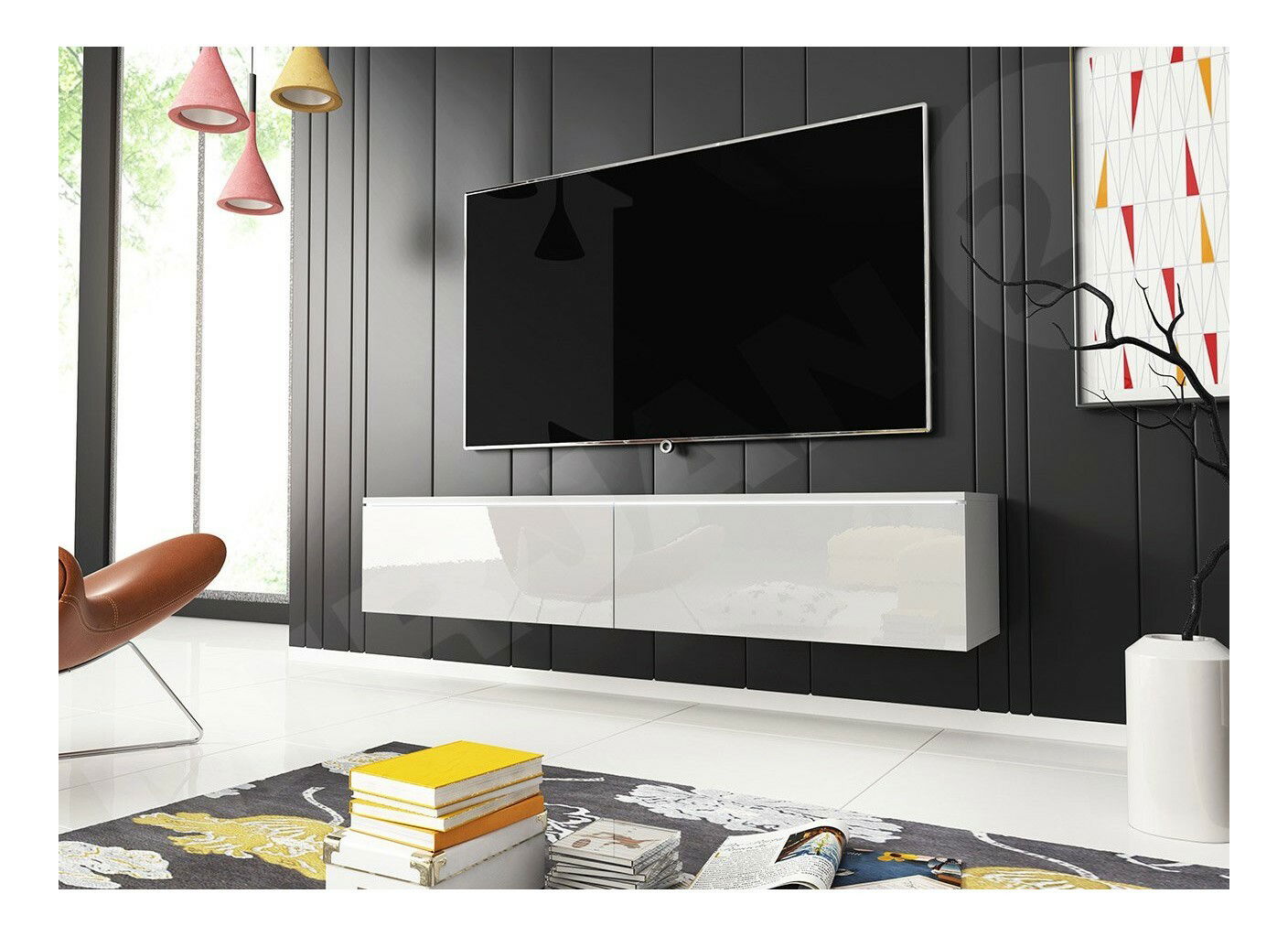 Masă TV/Dulap Dilune 140 (Alb + Alb lucios ) (iluminat LED Alb)