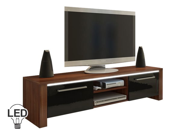 AfișeazăMasă TV cu un design clasic la prima vedere, dar designul unic al acesteia va fi vizibil după lăsarea serii. Iluminatul LED îi va oferi un design uimitor. Pe mijloc veți găsi raft care poate fi utilizat pentru dispozitivele AV. Masa conține mânere elegante iar ușile sunt rabatabile.