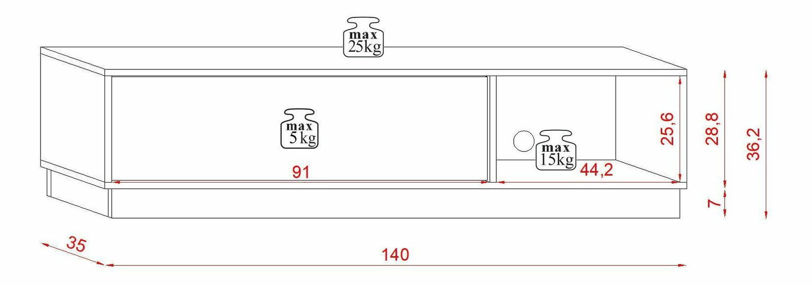 8,5x166,5x43,5 cm / 22 kg