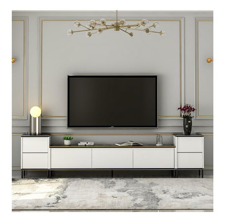 Masă TV/Dulap Iris (Alb + Negru + Auriu)