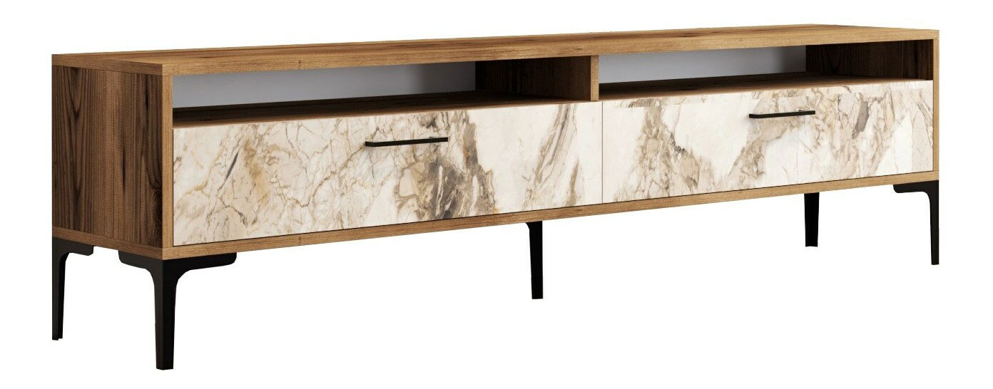Masă TV/Dulap Irma 2 (Nuc + Marmură albă)