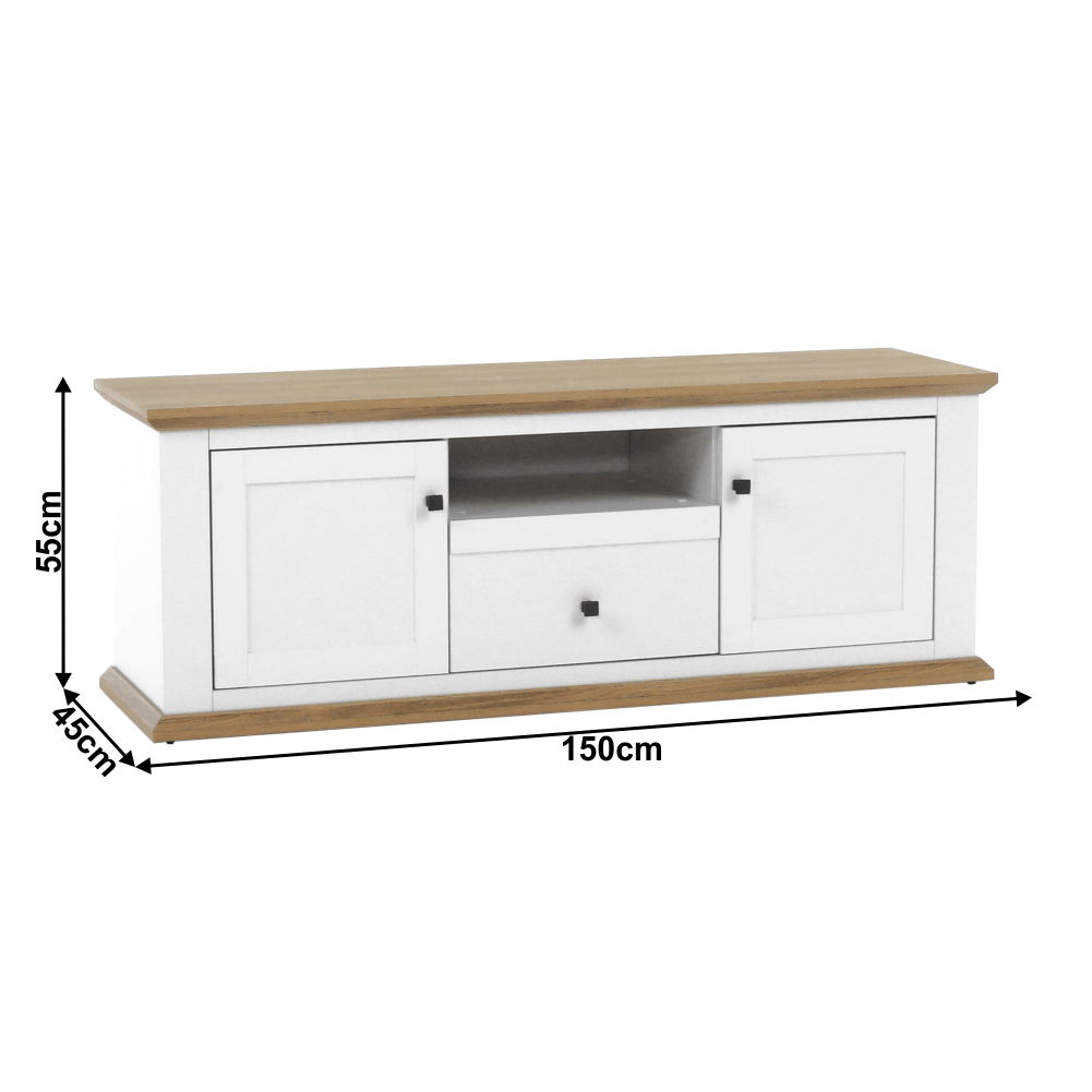 Masă TV/Dulap Leoras MZ15 (alb + stejar grand)
