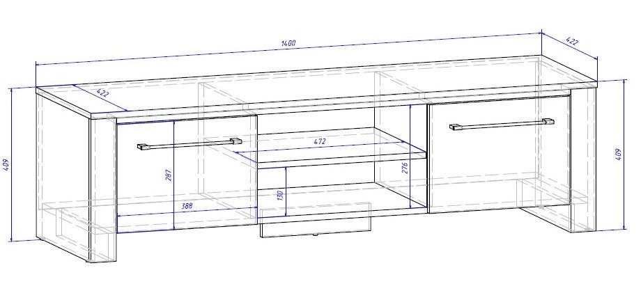 Masă TV/Dulap Marilee (negru mat + negru lucios)