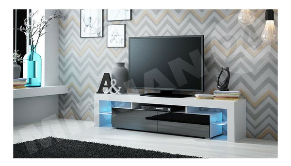 Masă TV/ Dulap Milos (Alb + Negru lucios ) (fără iluminat)