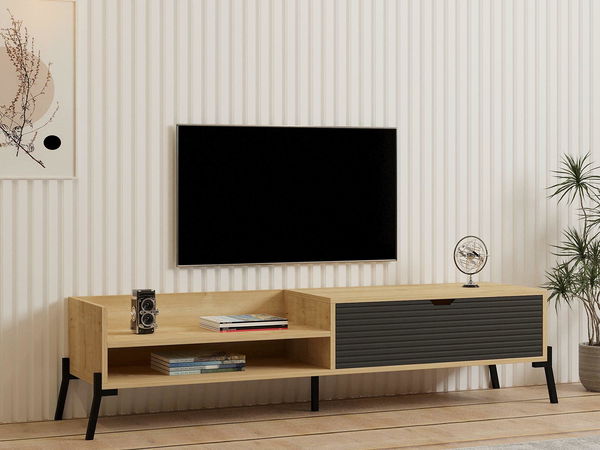 Masă TV/Dulap Momido (stejar zafir + antracit)