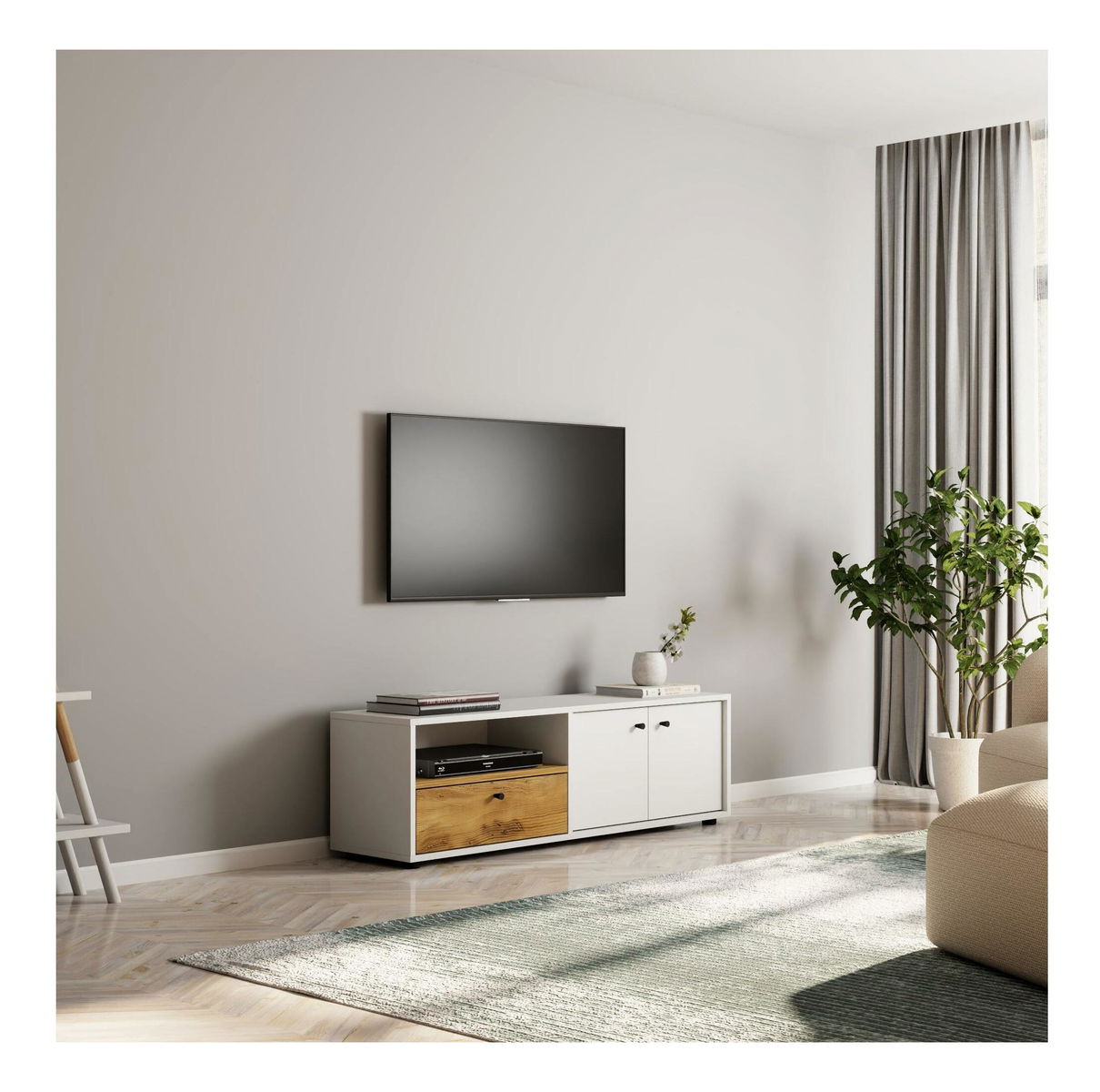 Masă TV/Dulap Parrey (Stejar alb)