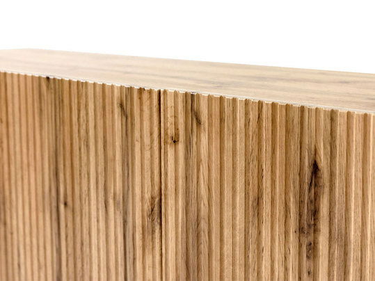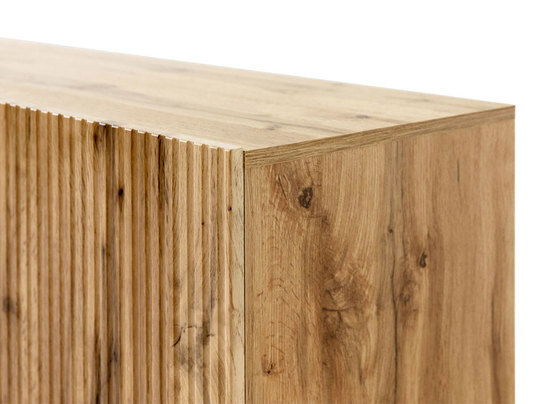fără mânere (fronturile ies ușor în afară deasupra blatului). Este normal să existe diferențe de nuanțe între cadrul din scânduri laminate și fronturile din MDF. Capacitate maximă: până la 35 kg. Avantajul incontestabil al dulapului este șemineul electric: flacără LED realistă