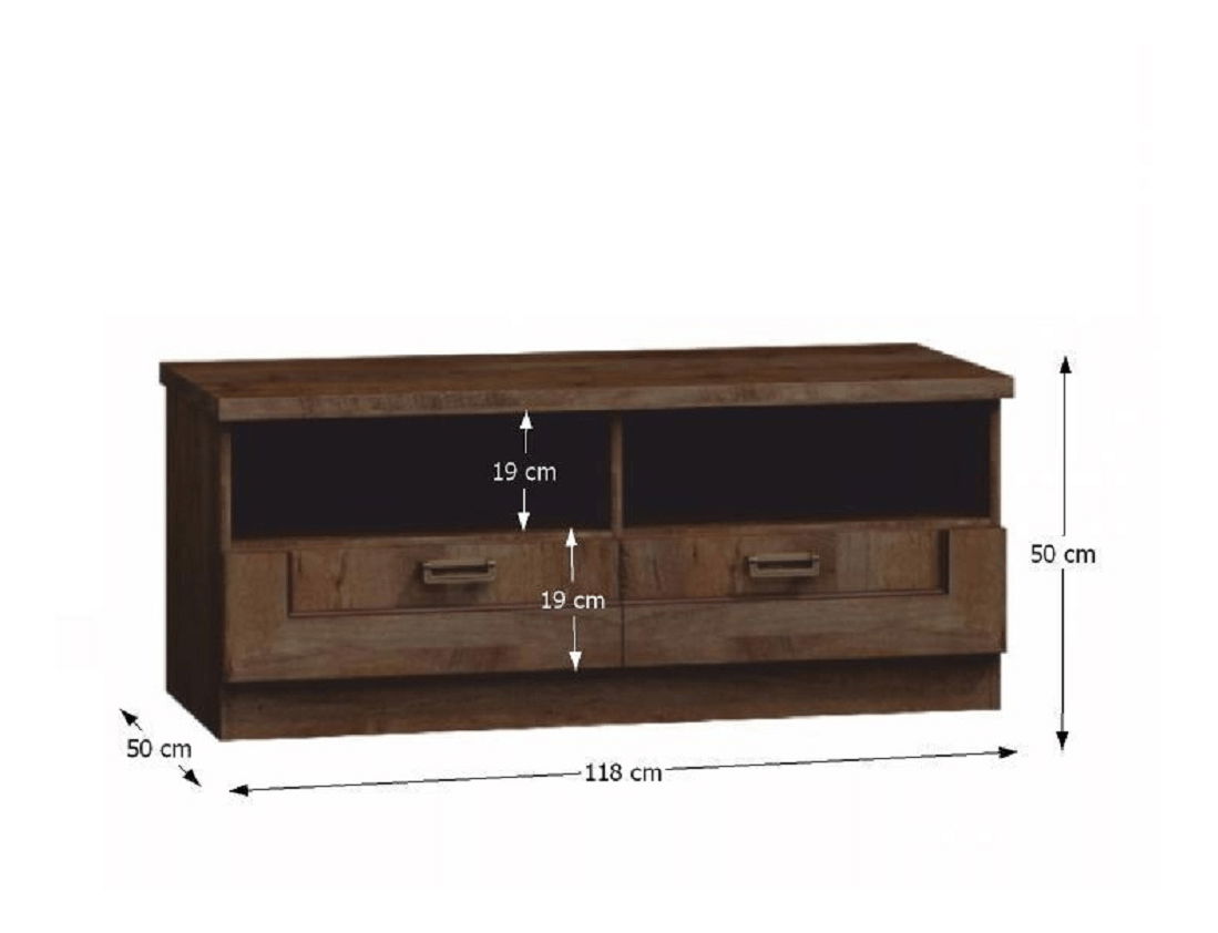 O masă rustică de televizor Tedy este potrivită pentru camera ta de zi. Are rafturi pentru dispozitivele AV și sertare. Mânerele mai mari pe sertare sunt realizate din metal. Masa este disponibilă in versiunea de stejar lefkas.
