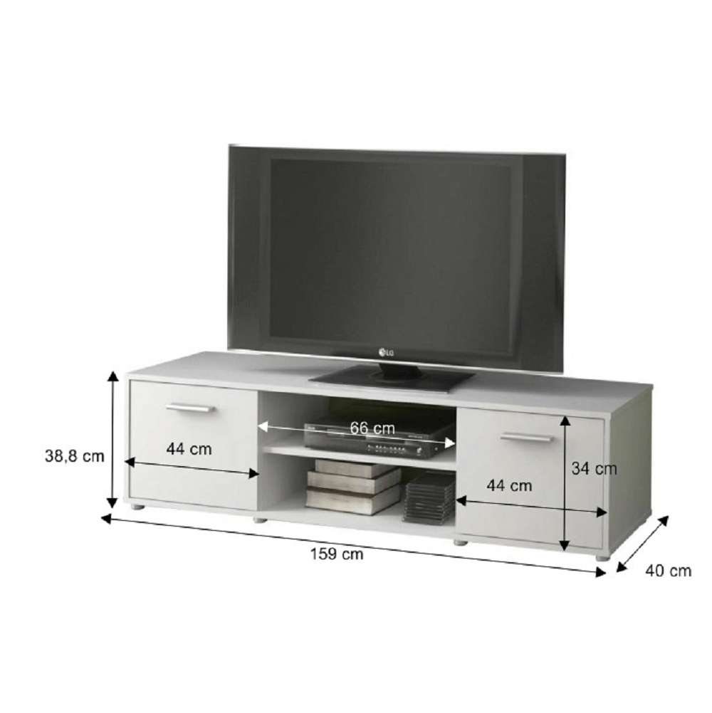 Masă TV practică care oferă suficient spațiu pentru televizorul vostru și dispozitivele audio/video. Masa este fabricată din pal laminat (16 mm). Se livrează dezasamblată.