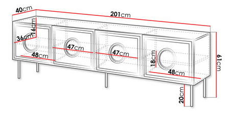 - Masă TV Godzes 4D (negru + Stejar craft)