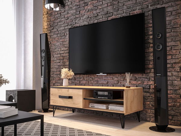 Masă TV Nolan -100 (Stejar craft auriu + Stejar craft auriu + Negru)