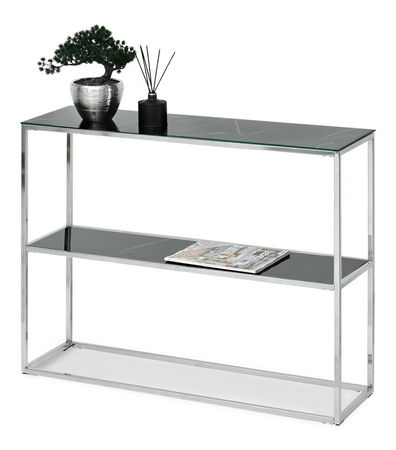 Măsuță consolă Bella Kons Bis (marmură negru + crom)