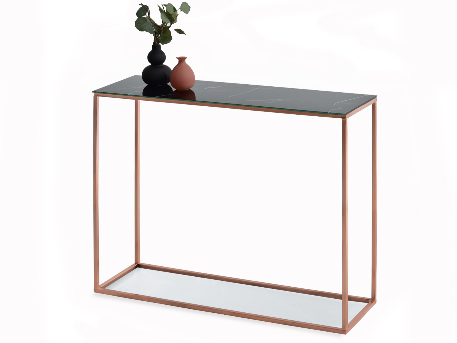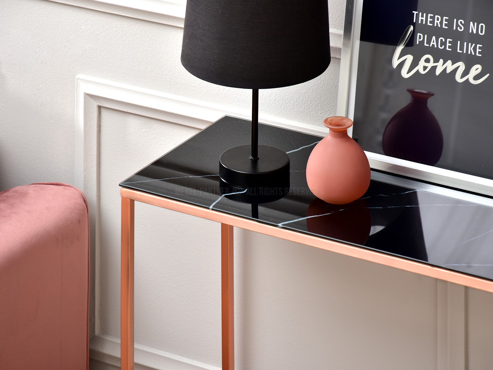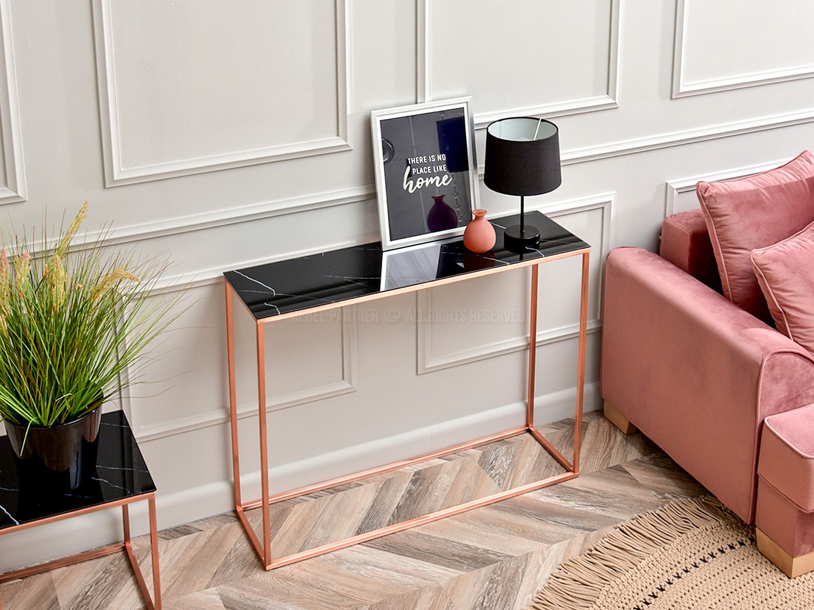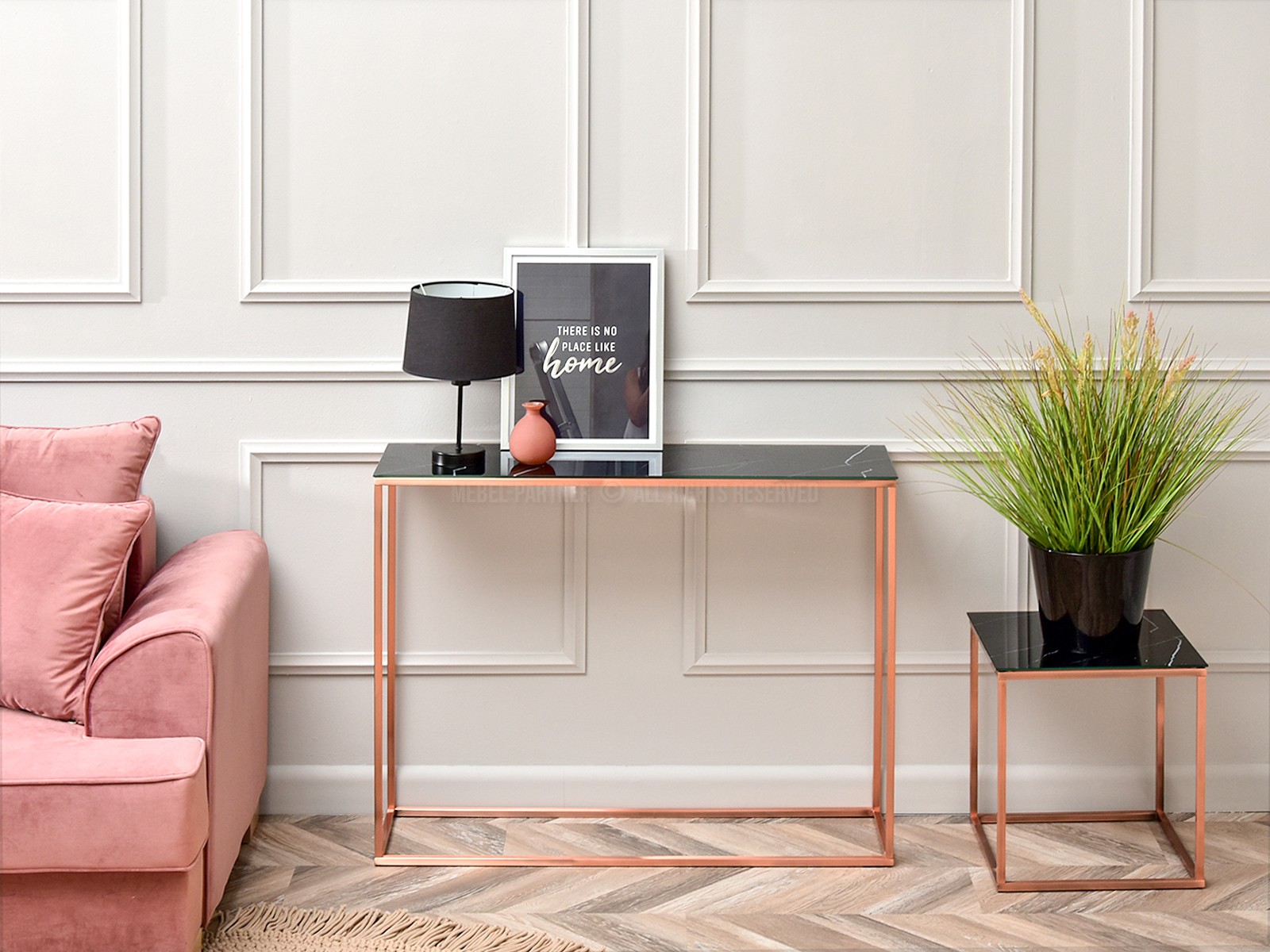 Măsuță consolă Bella Kons (marmură neagră + cupru)