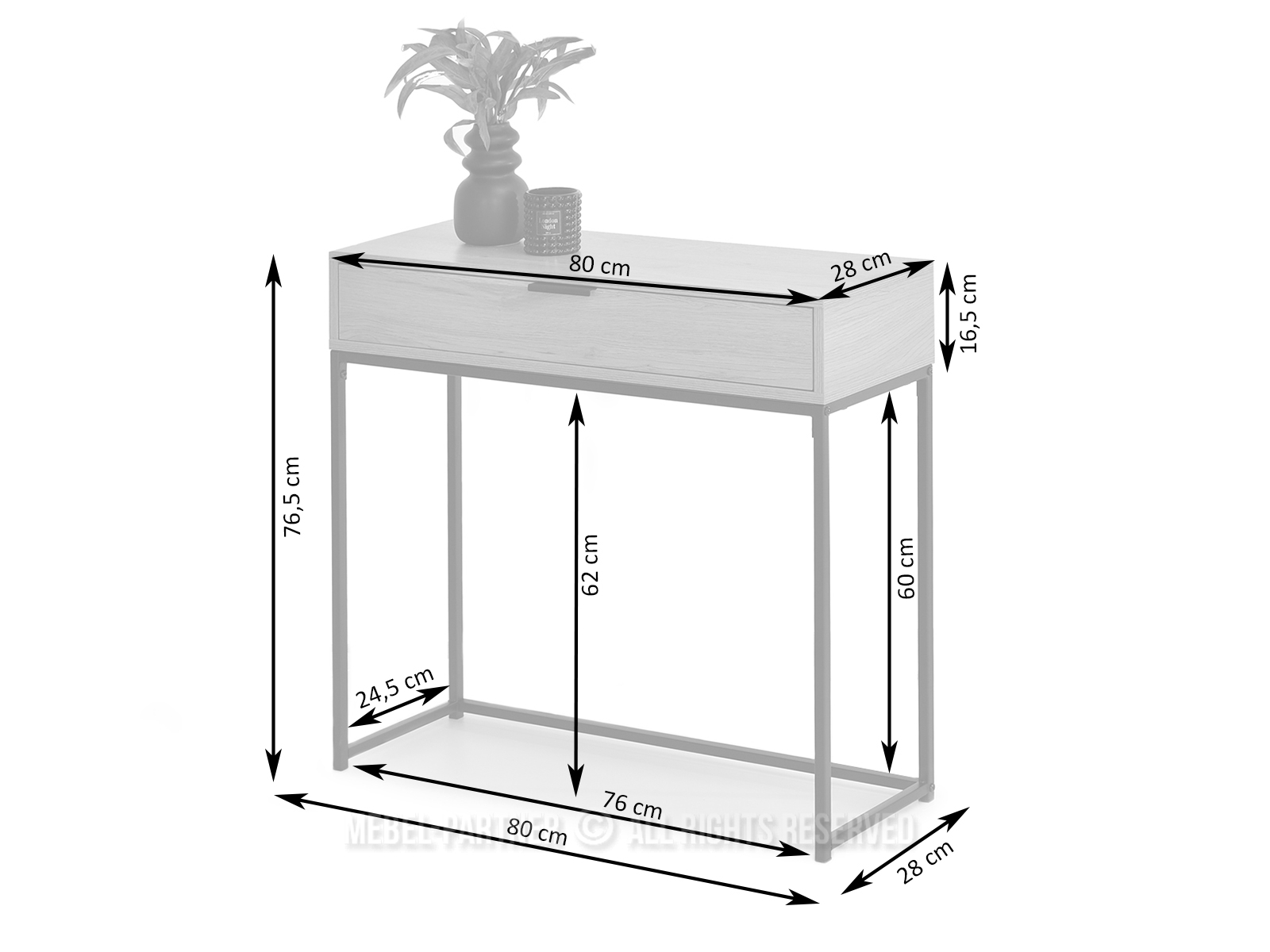 Este echipată cu un sertar compact care oferă un spațiu generos, ideal pentru depozitarea discretă a obiectelor mici, cum ar fi cheile sau corespondența, făcând-o un element practic și decorativ.