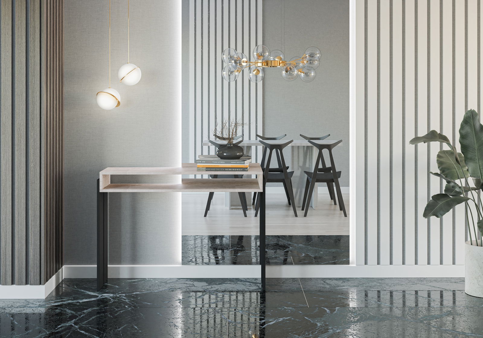 Măsuță consolă Ramea (Stejar platinum grange + Negru)