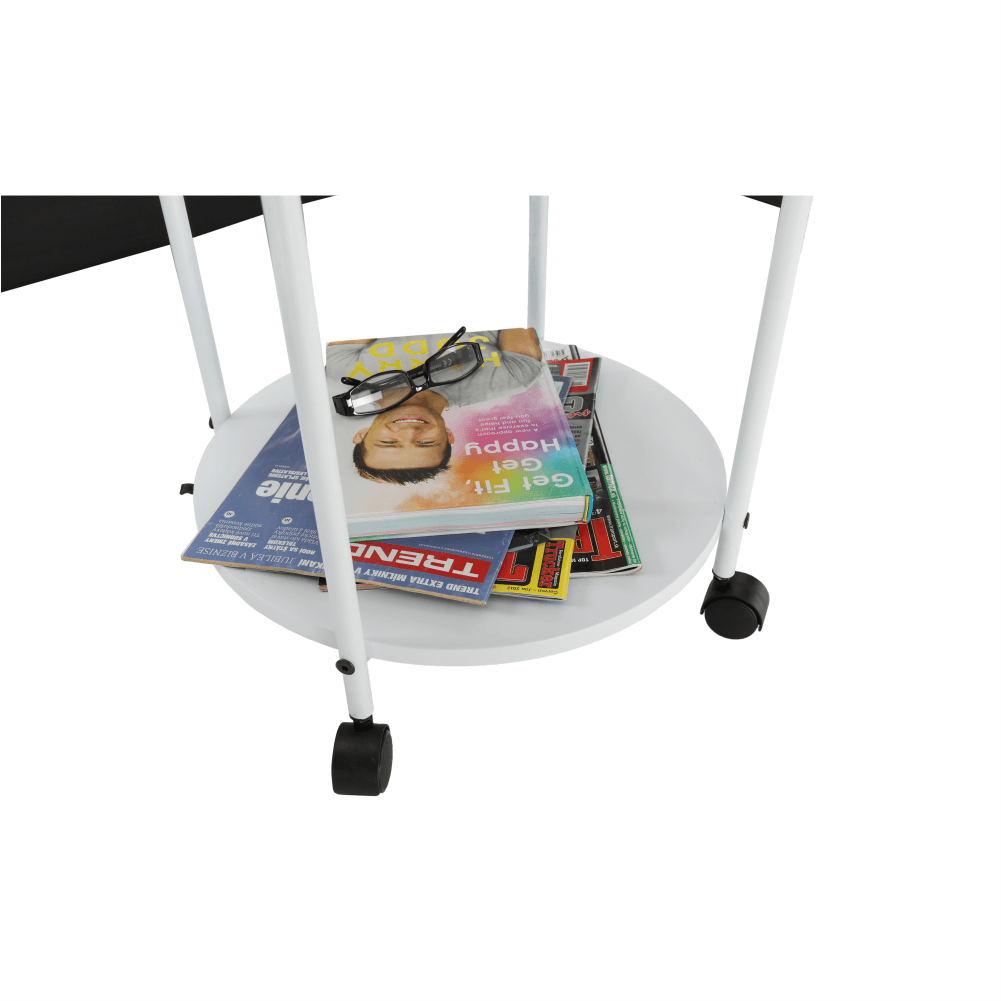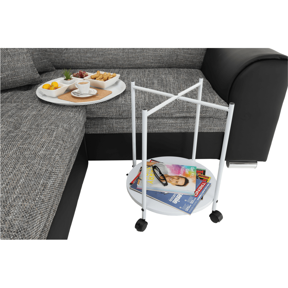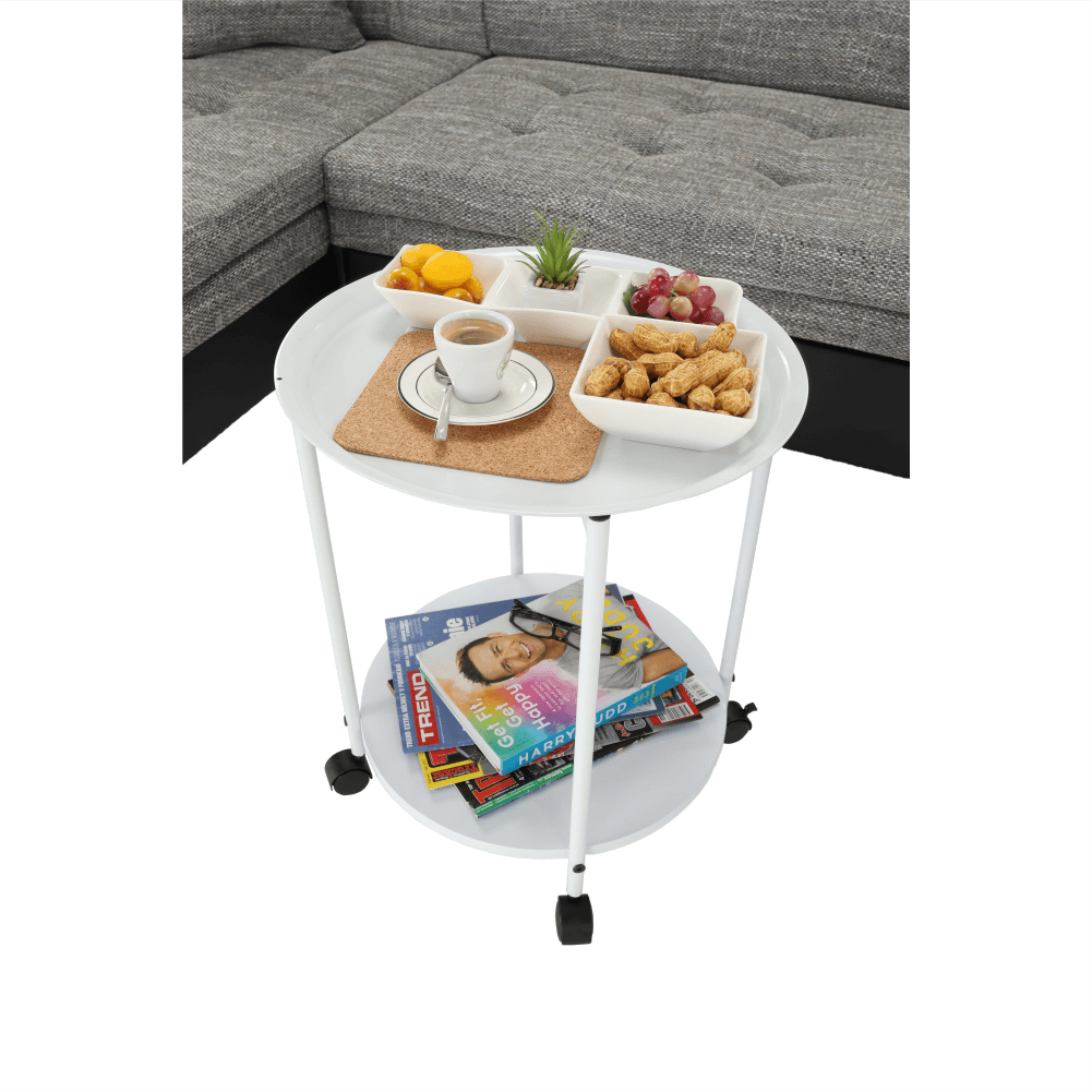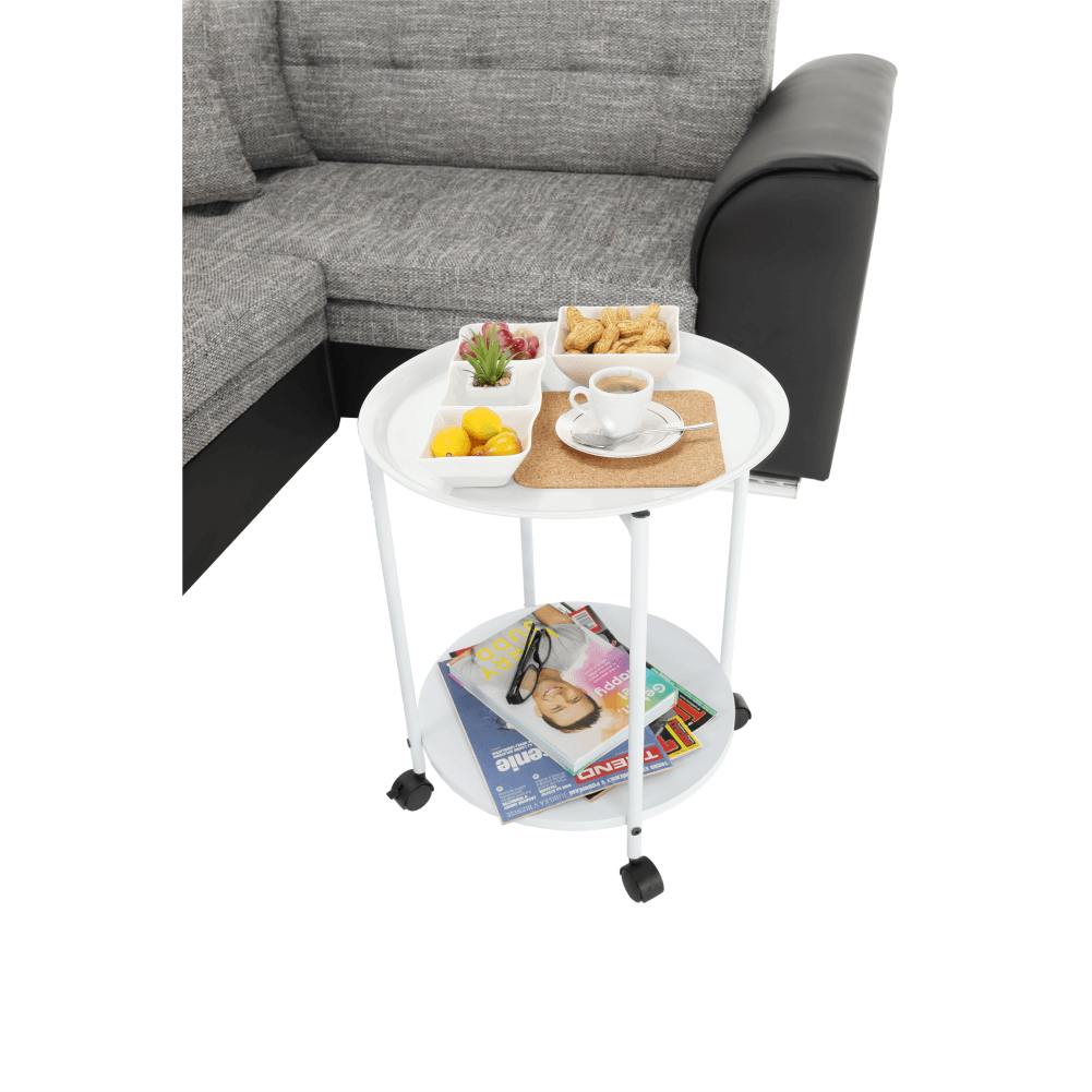 Fiecare loc de depozitare din casă în plus este folositor. Măsuța practică pe roți, care va fi tot timpul la îndemână va fi un ajutor foarte util pentru dvs. Poate fi plasată cu ușurință acolo unde aveți nevoie. Măsuța are raft pentru plasarea obiectelor atât în partea superioară cât și cea inferioară.