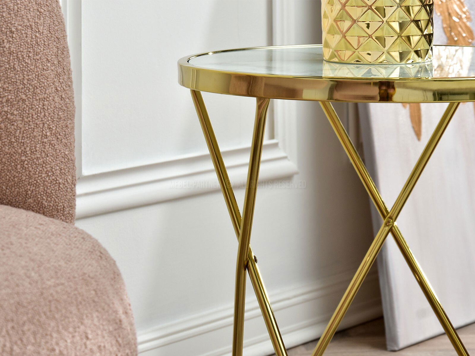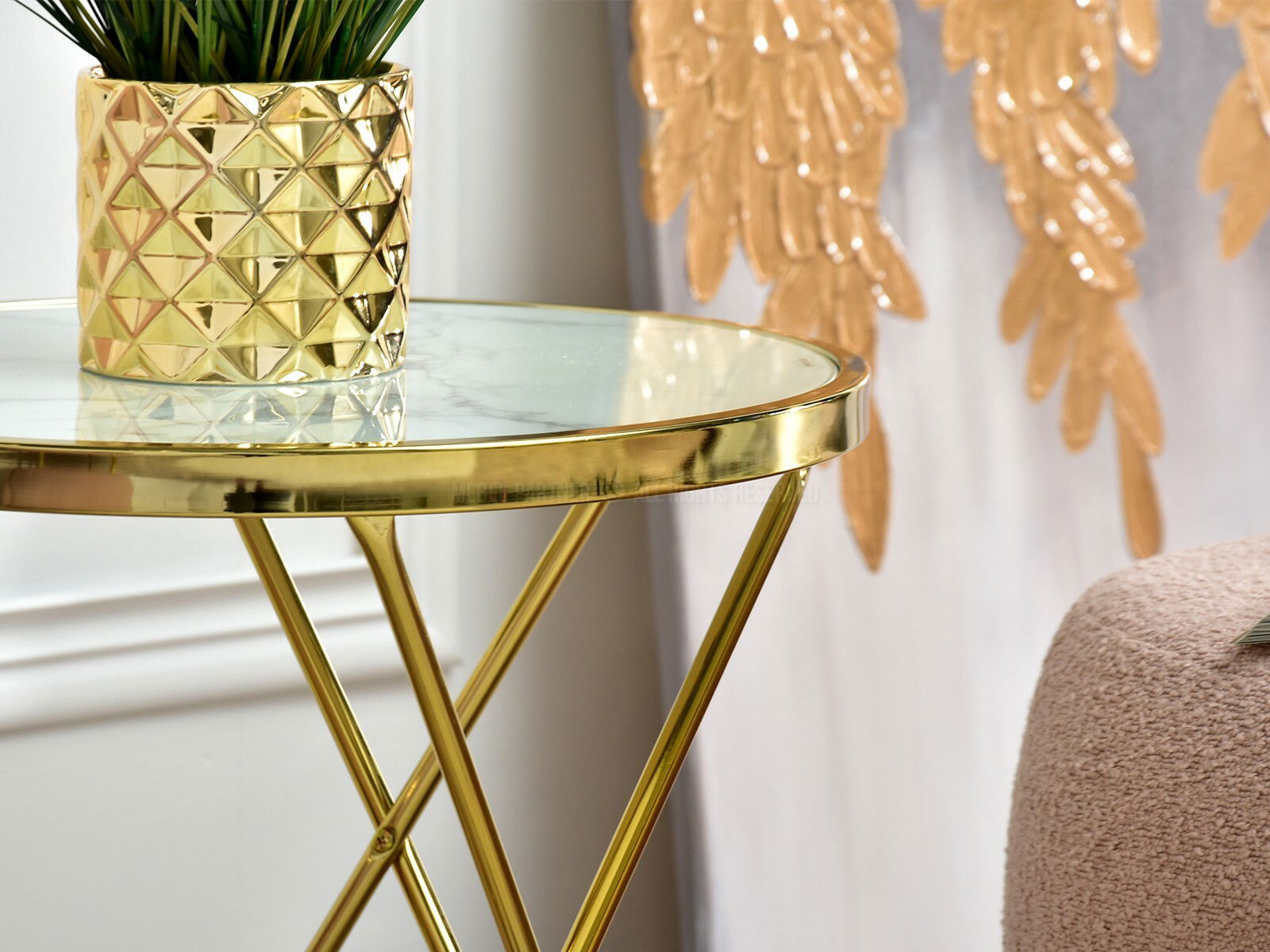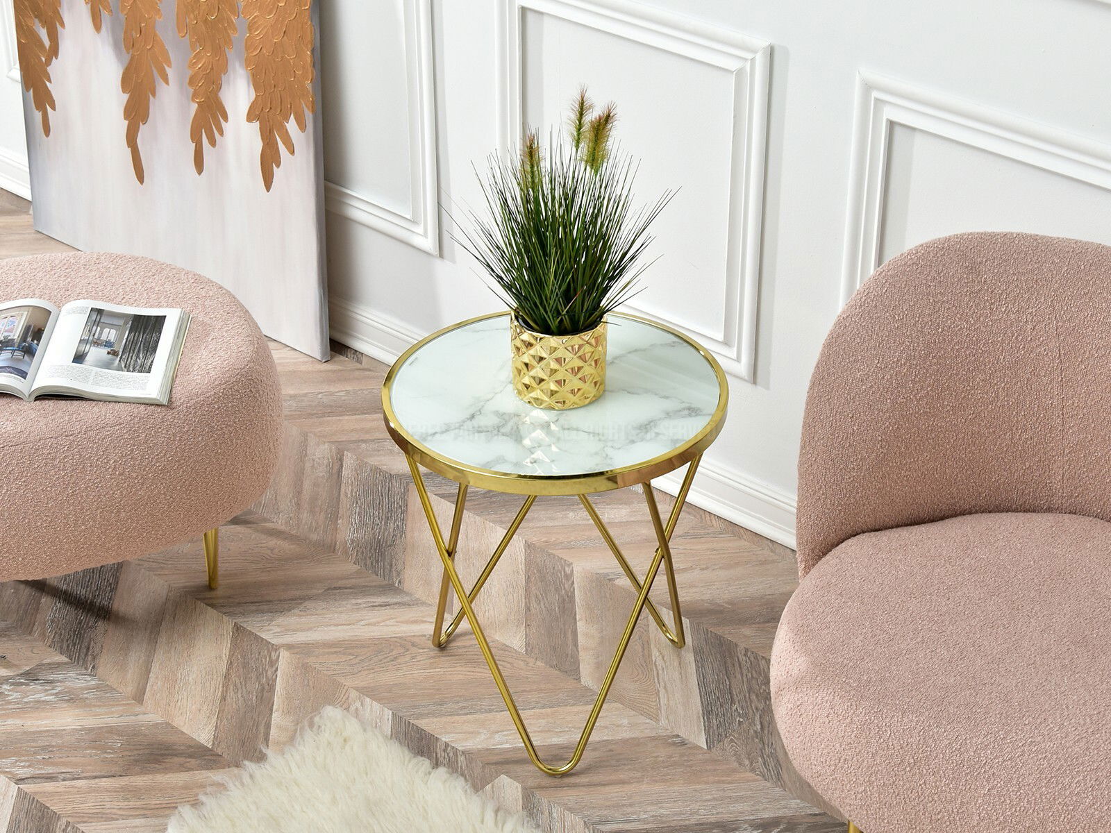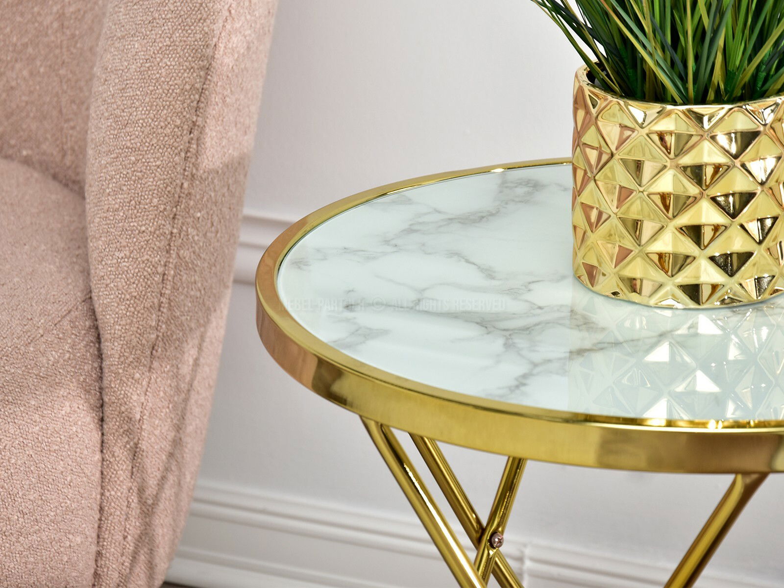 Măsuță de cafea Armin S (marmură albă + auriu)