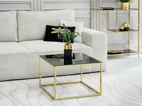 Măsuța de cafea Bella M este un accesoriu modern și rafinat, care îmbină stilul contemporan cu funcționalitatea practică. Cu un blat negru lucios, cu textură ce amintește de marmură, și un cadru auriu metalic, această măsuță de cafea devine un punct focal spectaculos în orice living, sufragerie sau spațiu de relaxare. Designul său minimalist și liniile drepte permit integrarea armonioasă în decoruri variate, de la modern urban și minimalist până la glam sau clasic reinterpretat.