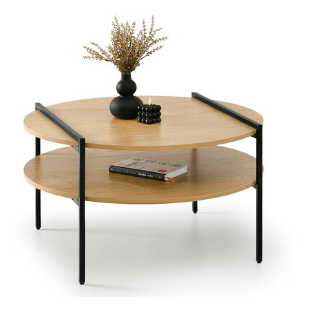 Măsuța de cafea Dario, realizată din stejar natural și metal negru, combină funcționalitatea cu un design simplu și plăcut, fiind ideală pentru spațiile moderne.