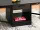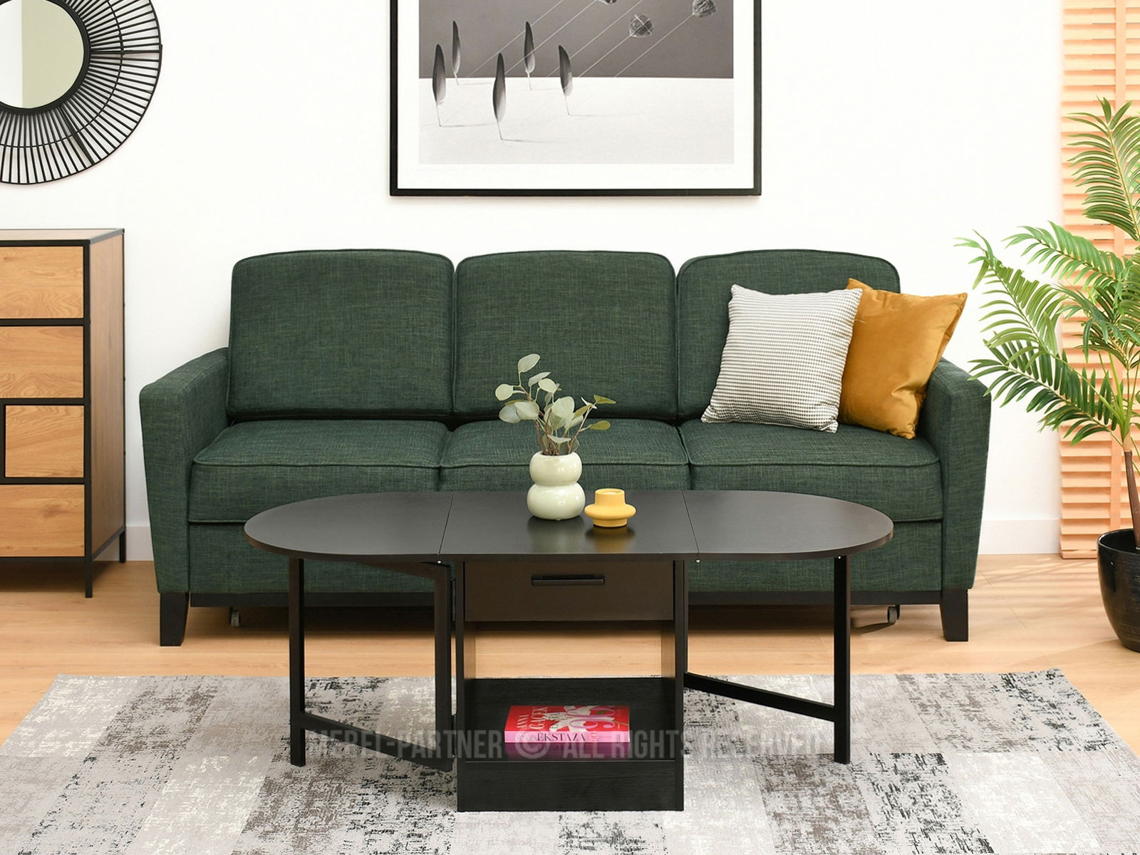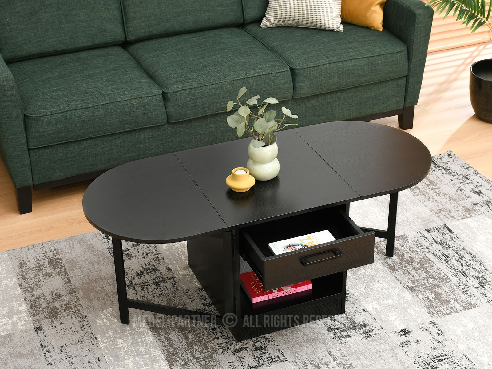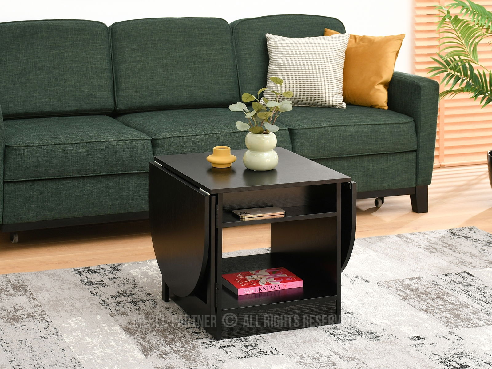 Măsuța de cafea Espana, în nuanțe elegante de lemn negru cu detalii negre, este alegerea perfectă pentru un living modern, minimalist sau industrial. Designul ingenios include extensii laterale ce se pot deschide, oferind flexibilitate maximă și transformând măsuța dintr-un element compact într-un spațiu practic pentru lucru sau dining.