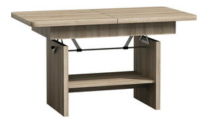 Este mai mult decât o măsuță de cafea decât o măsuță de cafea obișnuită, deoarece este mai înaltă și poate fi ajustată și mai sus pentru un fotoliu mai înalt sau pentru luat masa, de exemplu. în timpul cateringului. Mai mult, dacă există suficient spațiu în cameră, suprafața mesei poate fi mărită pe lungime cu ajutorul unui insert.