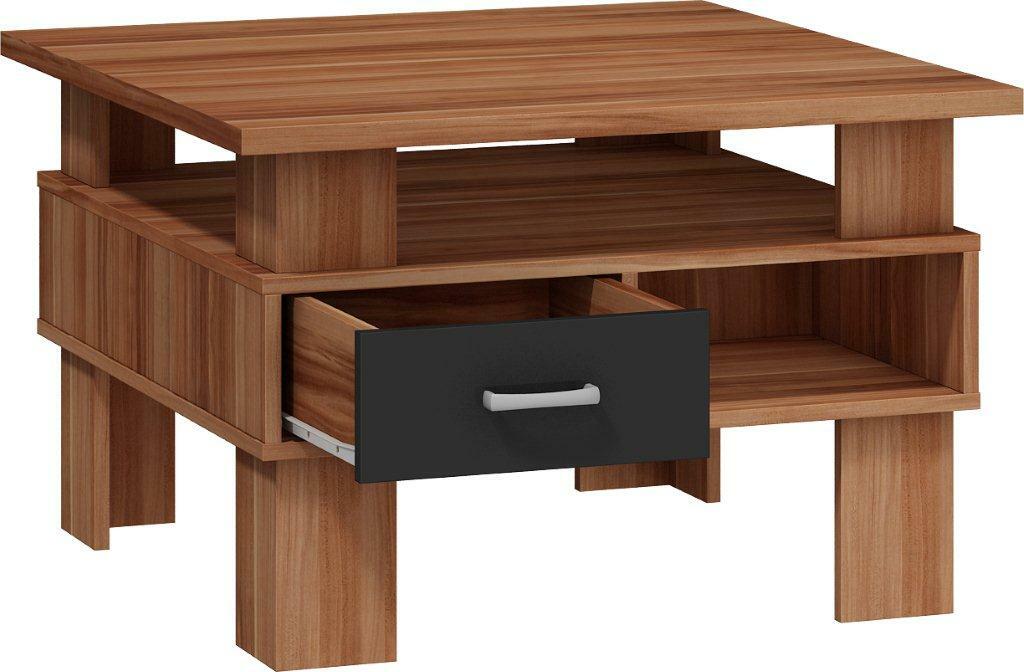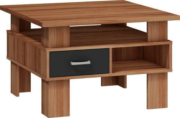 AfișeazăMasă de cafea practică, compactă cu două sertare opuse unul față de celălalt.