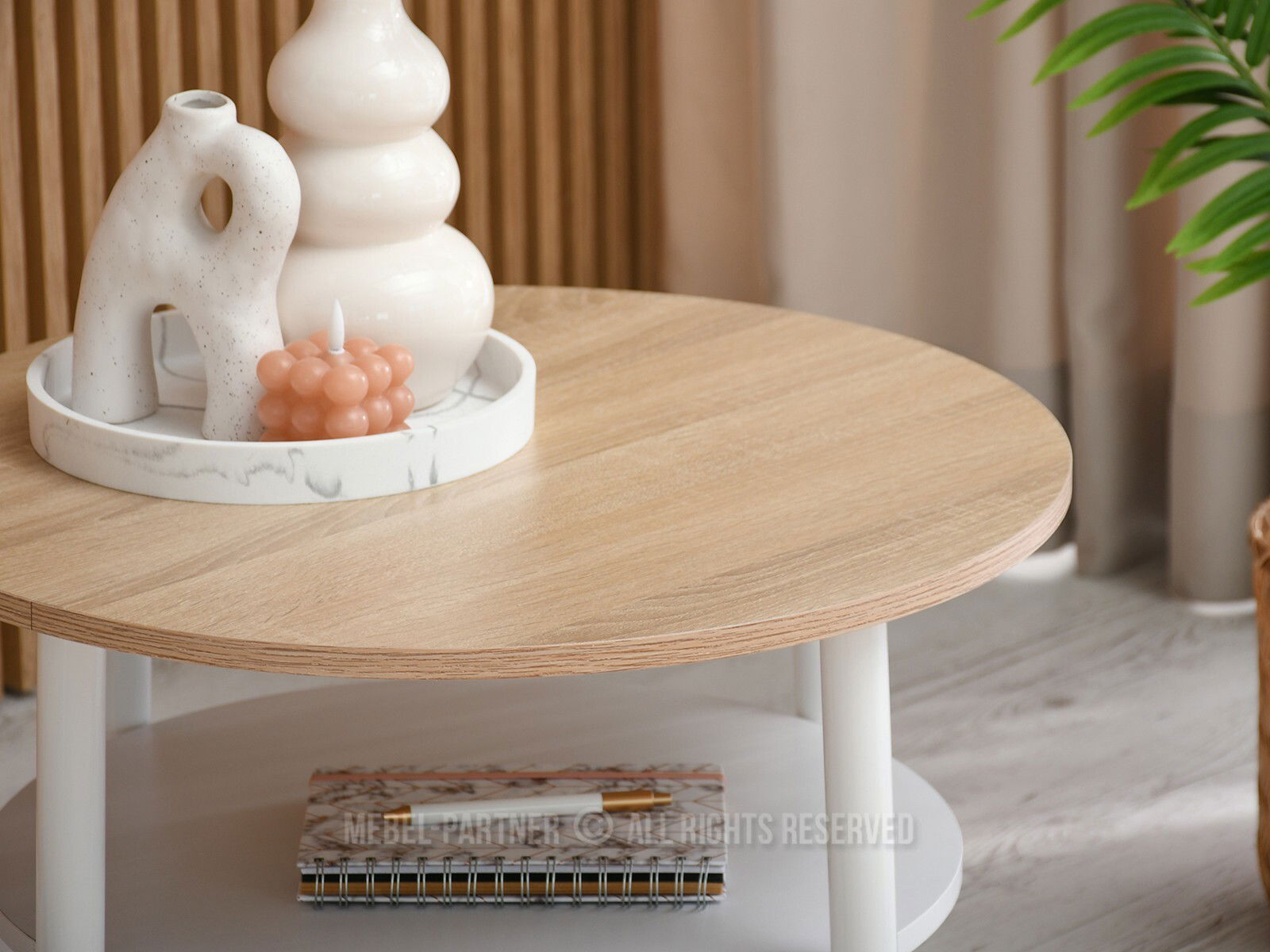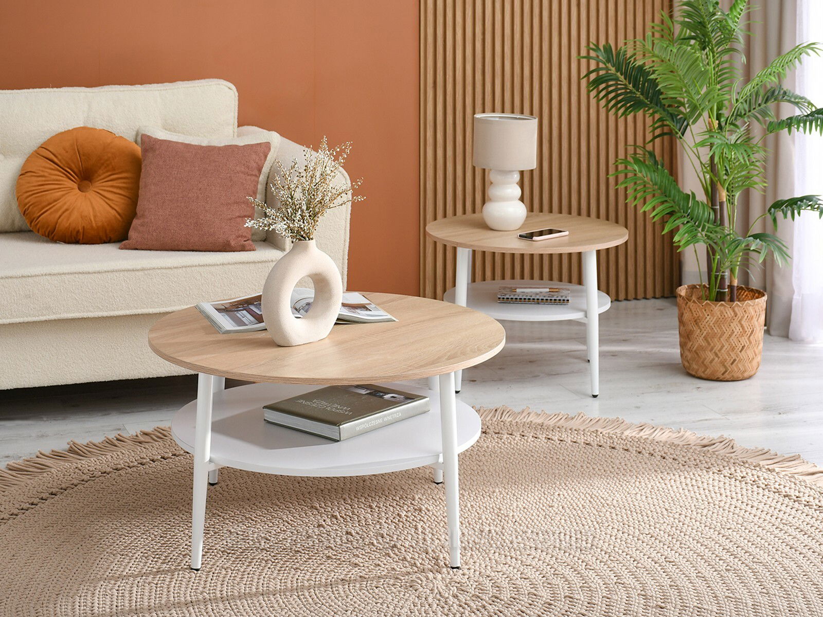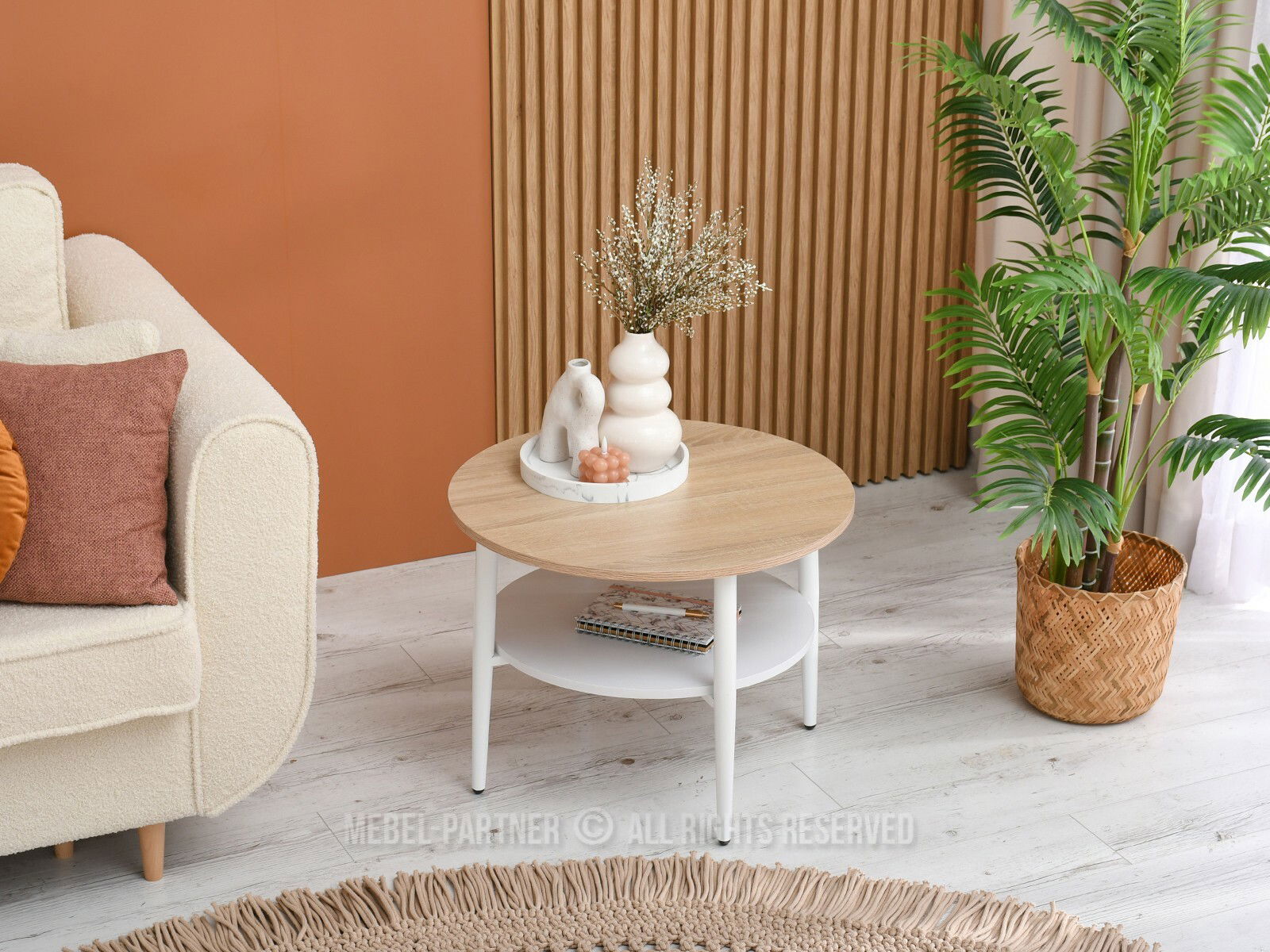 Măsuța de cafea Randolf S în nuanțe calde de sonoma și alb este ideală pentru un living primitor și funcțional. Designul său rotund și dimensiunile compacte o fac potrivită atât pentru spații mici, cât și pentru cele generoase, integrându-se armonios în stiluri moderne, scandinave sau minimaliste.