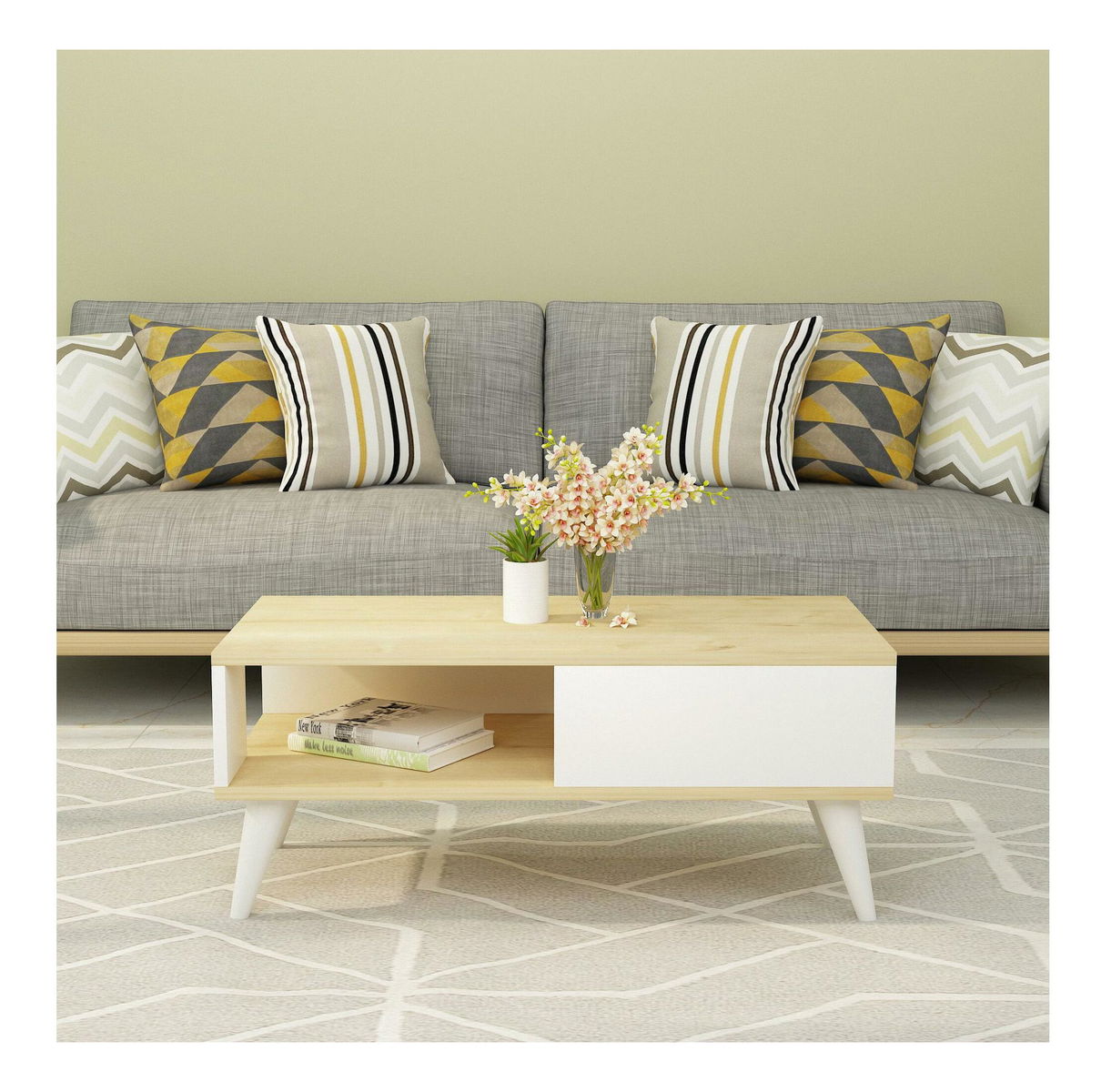 Măsuță de cafea Vavepu 2 (stejar zafir + alb)