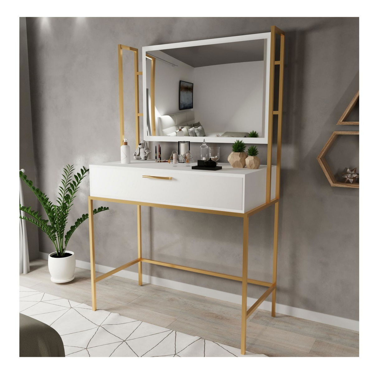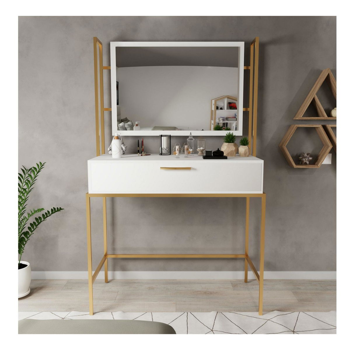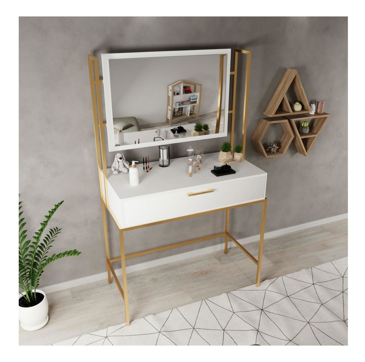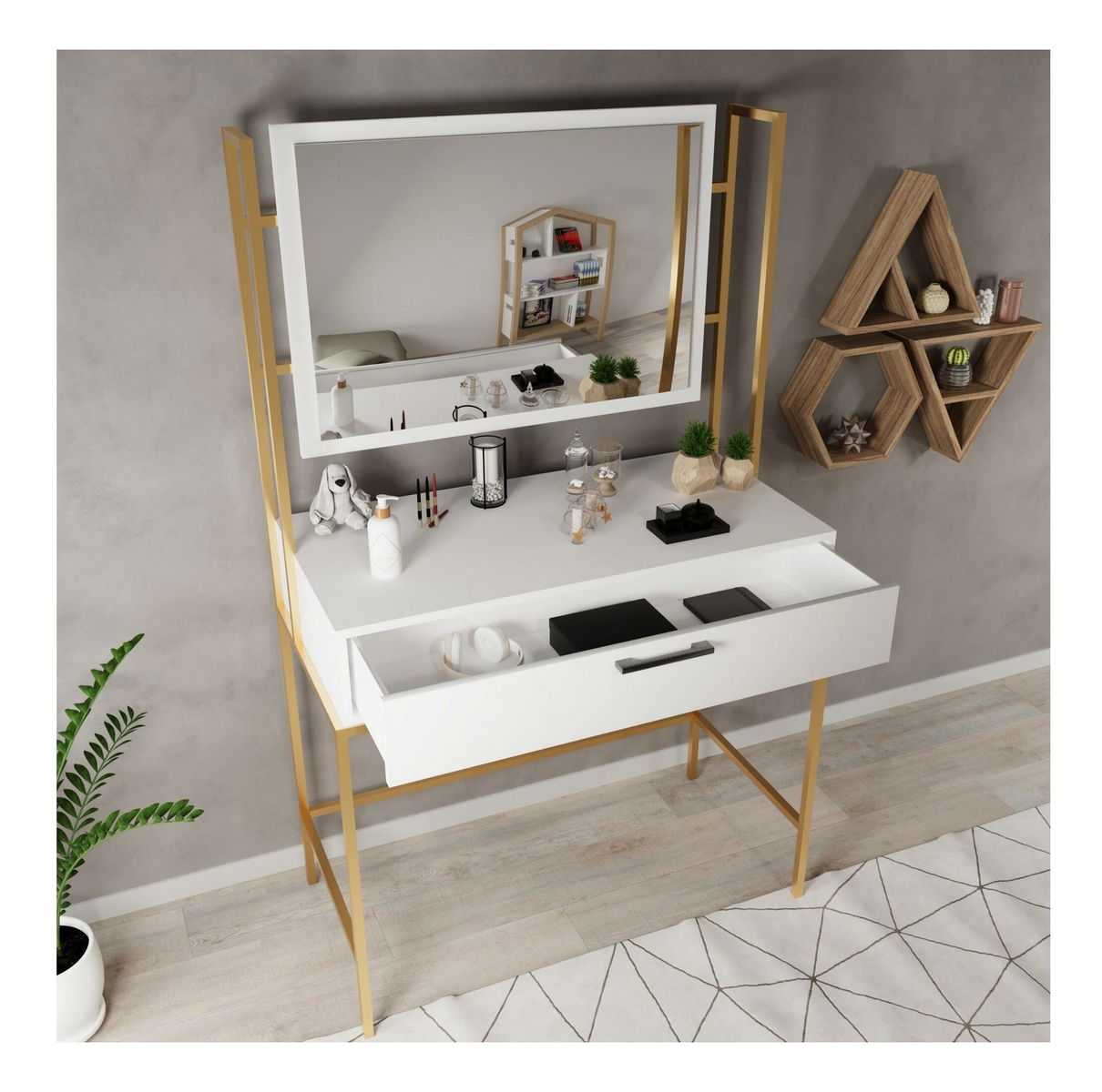 Măsuță de toaletă Modem L747 (alb + auriu)