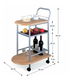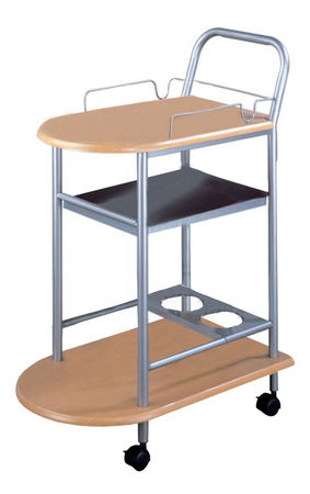 Masă de servire practică cu ajutorul cărei îi serviți confortabil pe cei dragi, prieteni sau clienți. Utilizarea își găsește și în hoteluri sau restaurante. Construcția din metal în culoarea argintie este completată cu două plăci PAL în culoarea fagului. Două dintre cele patru roți au piedică.