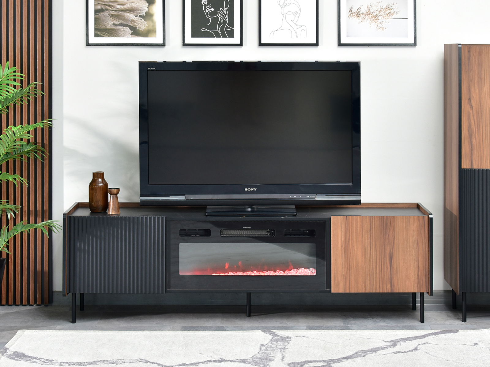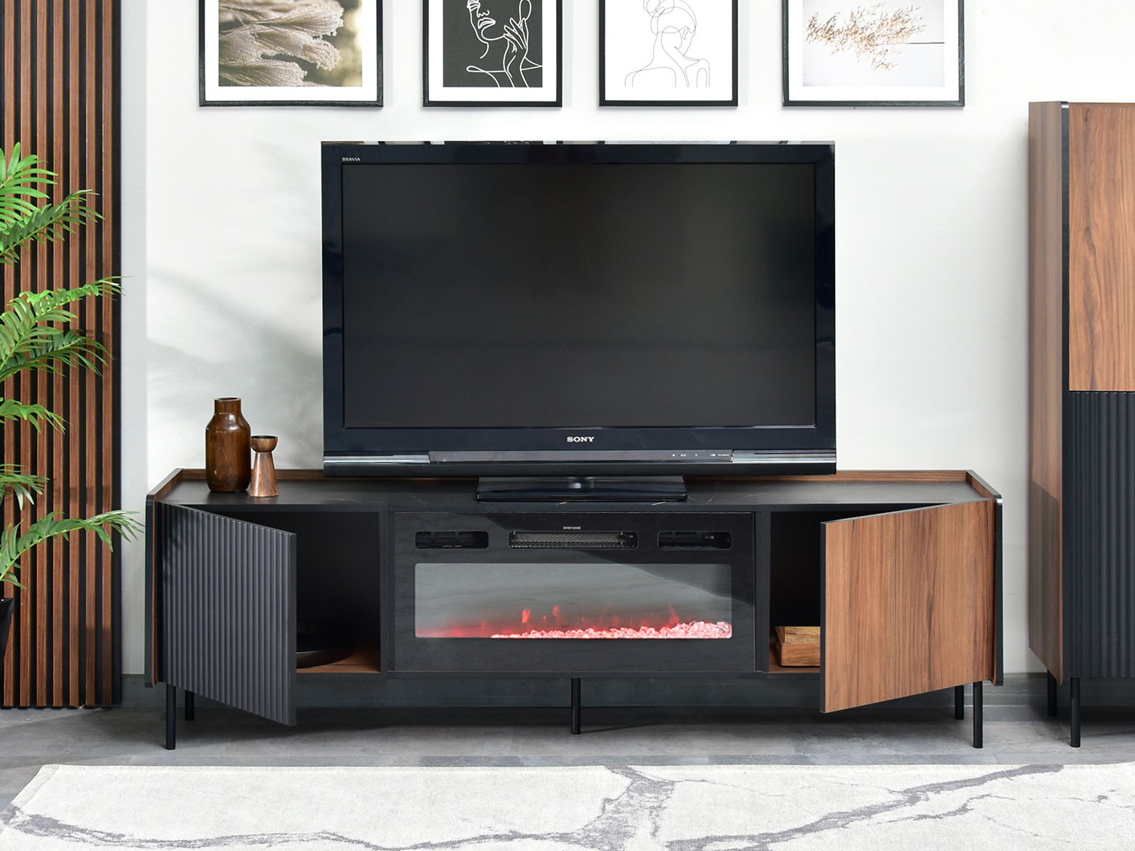 Măsuță TV/Dulap Protegidas P17 (negru) (cu șemineu)