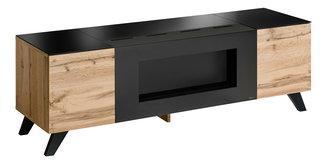 Masă TV/Dulap Trilari 180 cu șemineu (stejar wotan + stejar wotan + Negru)